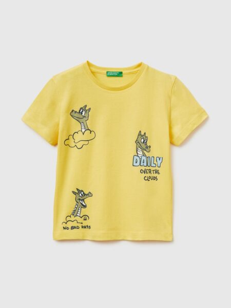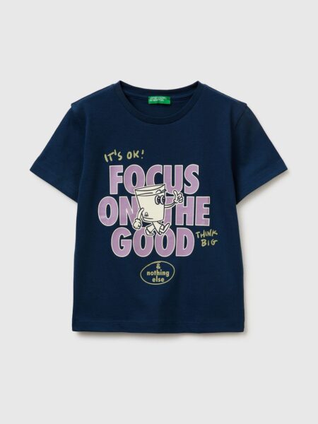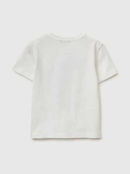 Majica sa okruglim izrezom od čistog pamuka. Kratki rukavi, mekano rame i print na prednjoj strani. Ova odeća je napravljena od 100% organskog pamuka sa OCS sertifikatom. SERTIFIKOVANO OD ICEA – ICEA – TKS – 611. Proizvodi sertifikovani u skladu sa Standardom za organski sadržaj (OCS) sadrže nezavisno verifikovani organski sadržaj u svakoj fazi lanca snabdevanja, od reciklaže do gotovog proizvoda.