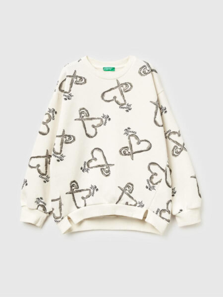 Dukserica sa okruglim izrezom od tople mešavine pamuka. Opušteni kroj sa dugim rukavima i bočnim prorezima. Print srca po celoj površini, za ležerne, a opet ženstvene odevne kombinacije.