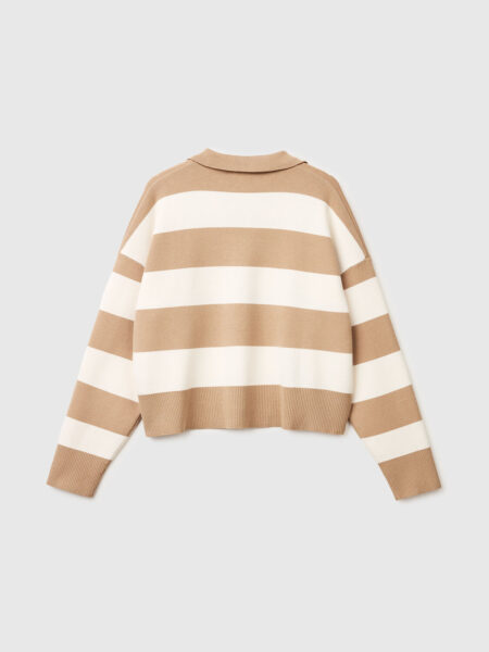 Odaberite opcije Ovaj proizvod ima više varijanti. Opcije mogu biti izabrane na stranici proizvoda.nova kolekcija11290.00RSDMajica dugih rukava sa polo kragnom od meke mešavine viskoze. Kuckasti kroj sa spuštenim ramenima, dvobojnim prugastim pletenjem i rebrastim manžetnama i rubom. Ženstvena i moderna verzija sportsko-ležernog klasika.