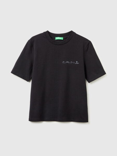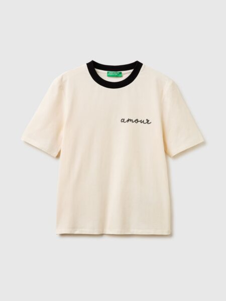 Majica sa okruglim izrezom kratkih rukava od mekog rastezljivog pamuka. Vez sa natpisom „amour“ i šljokicama na levoj grudi. Da biste dodali tračak glamura svakoj svakodnevnoj odeći.