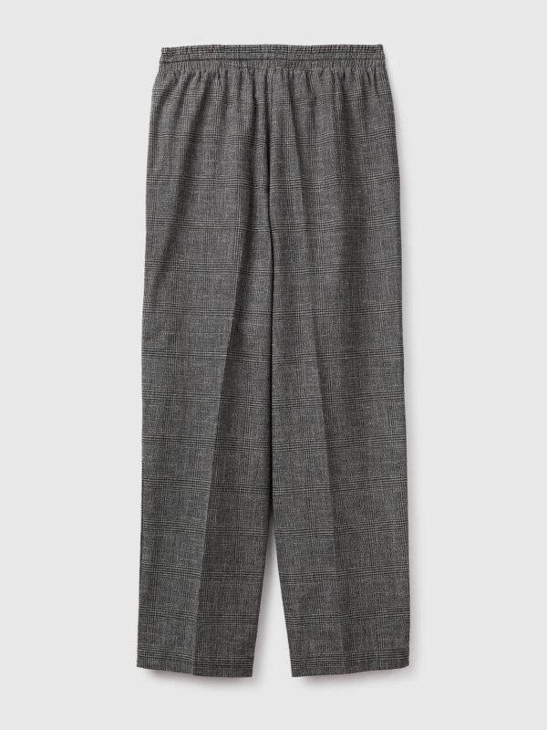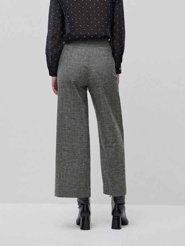 Odaberite opcije Ovaj proizvod ima više varijanti. Opcije mogu biti izabrane na stranici proizvoda.nova kolekcija9990.00RSDDuge pantalone od mekog prediva obojenog pamukom i lanom u kombinaciji sa uzorkom Princa od Velsa. Elastičan struk sa vezicom, centralnim peglanim naborom, prednjim džepovima i džepom sa prelivom na zadnjoj strani. Ležerna odeća pogodna i za kancelariju i za slobodno vreme.