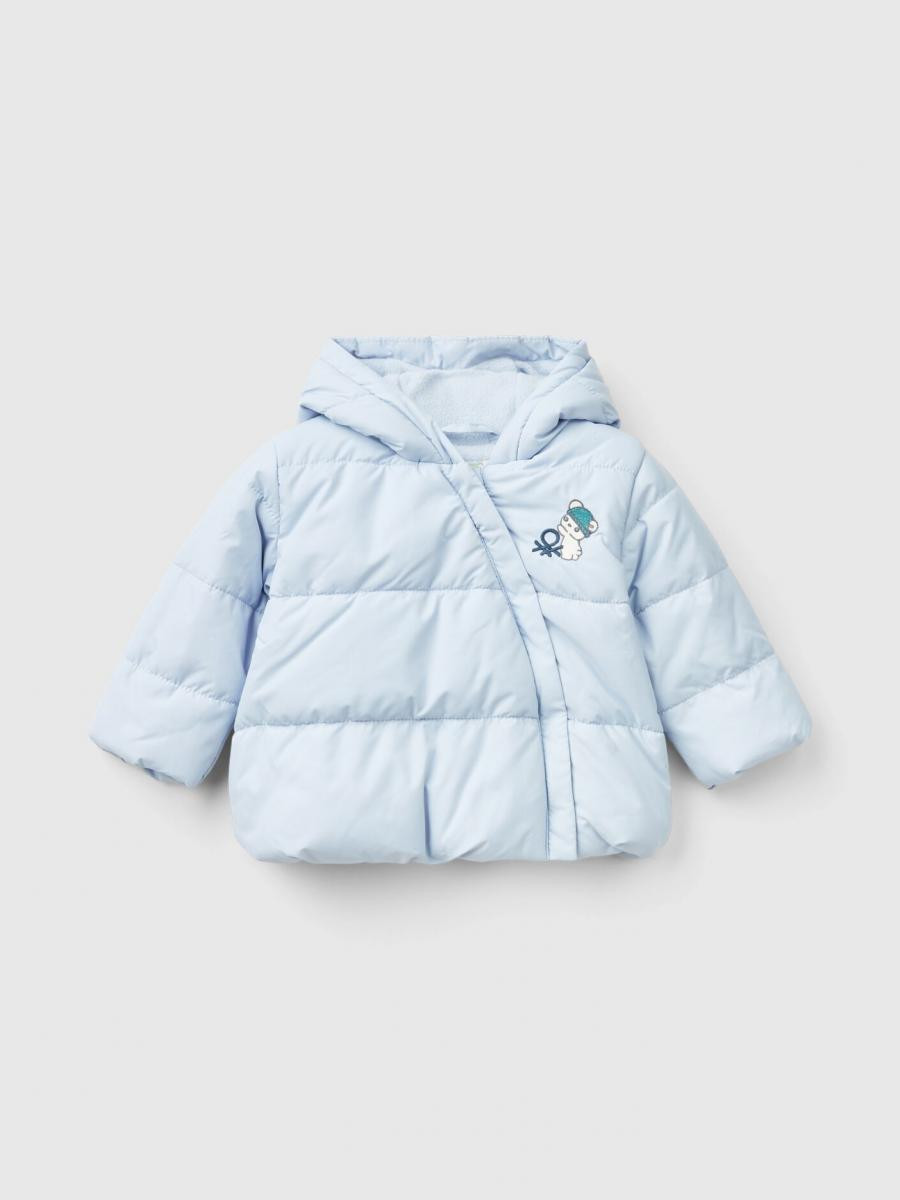 Jakna od tehničke tkanine „Rain Defender“ sa toplim punjenjem od vate i flis postavom. Kapuljača sa nalepljenim ušima, skriveno bočno zakopčavanje napred sa rafflešusem i zaštitnim štitnikom, logo i mala životinja izvezeni na levoj strani grudi. Topla, ali lagana, idealna za novu sezonu.