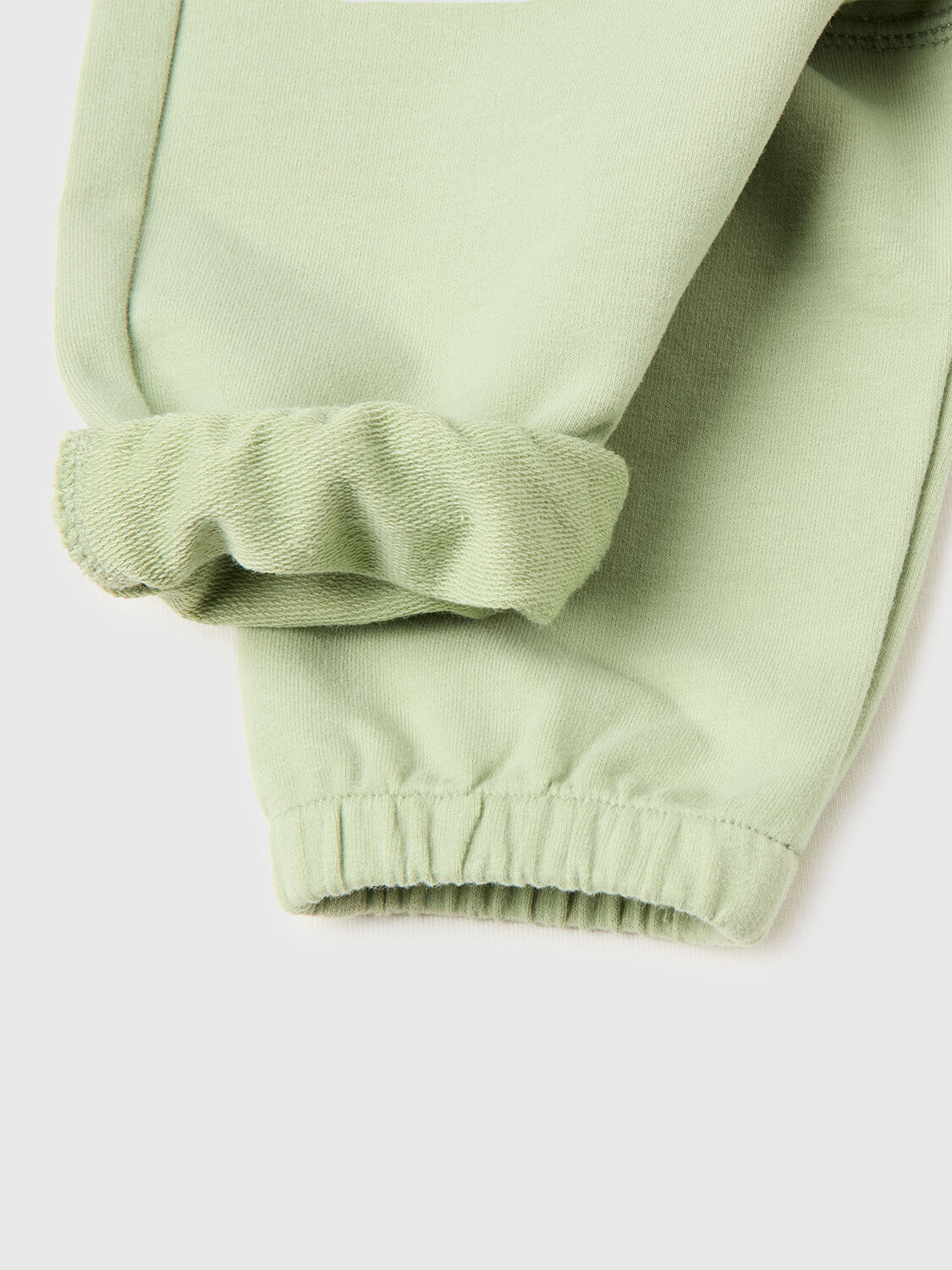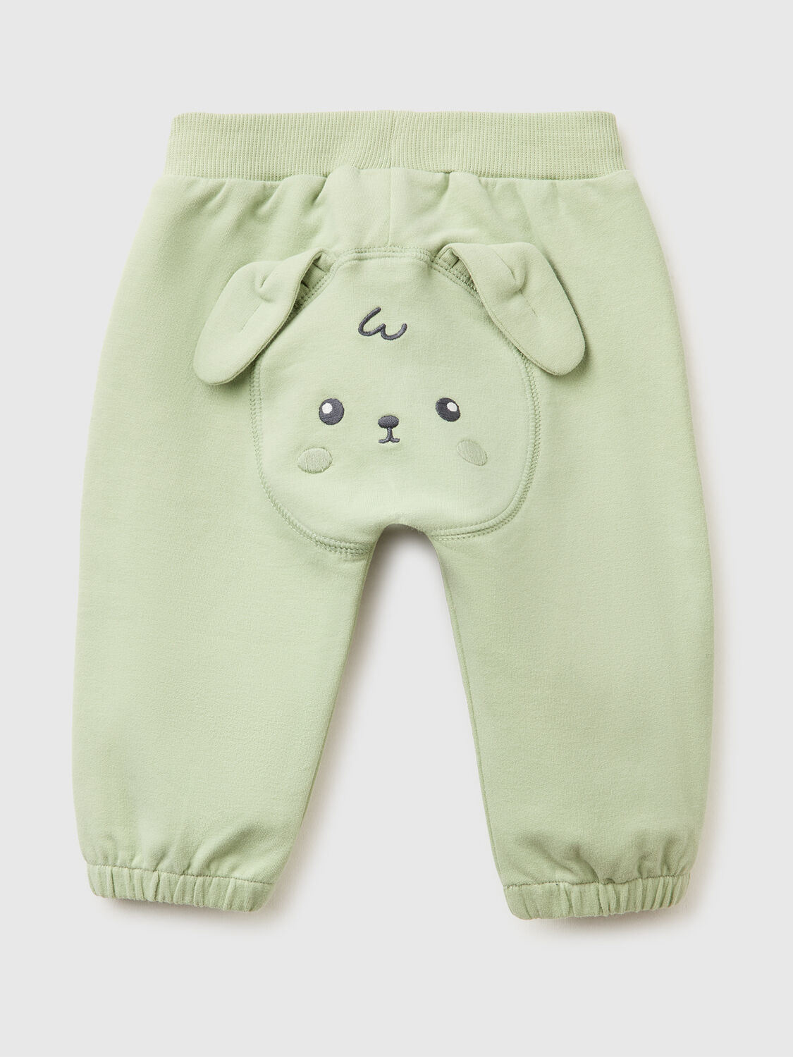 Duge pantalone sa elastičnim strukom, umetkom u obliku životinjskog lica i aplikacijom za uši na leđima.