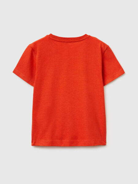 Majica sa okruglim izrezom od čistog pamuka. Kratki rukavi, mekano rame i print na prednjoj strani. Ova odeća je napravljena od 100% organskog pamuka sa OCS sertifikatom. SERTIFIKOVANO OD ICEA – ICEA – TKS – 611. Proizvodi sertifikovani u skladu sa Standardom za organski sadržaj (OCS) sadrže nezavisno verifikovani organski sadržaj u svakoj fazi lanca snabdevanja, od reciklaže do gotovog proizvoda.
