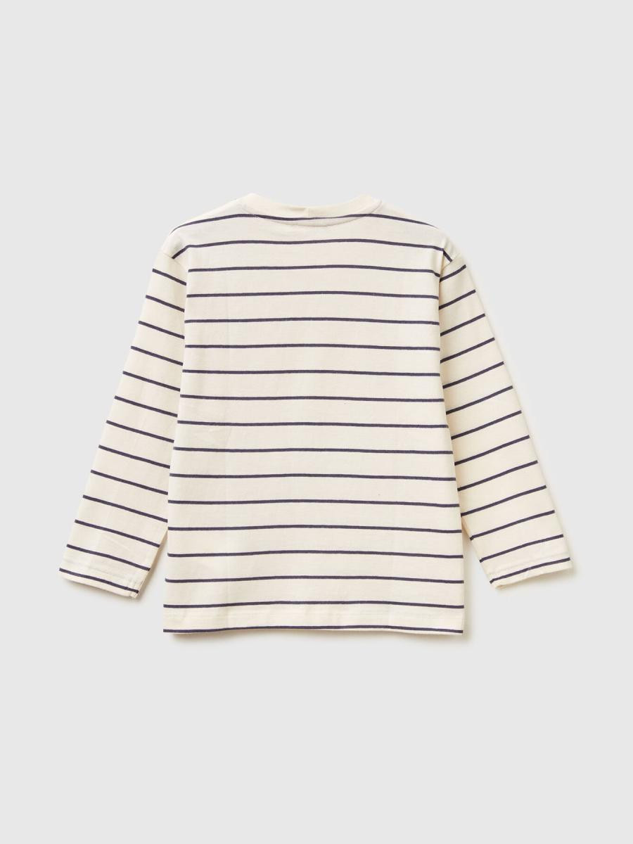 Majica dugih rukava sa okruglim izrezom od čistog pamuka, topao osećaj. Prugasti uzorak bojen pređom i štampa na prednjoj strani sa aplikacijom od veštačkog krzna.