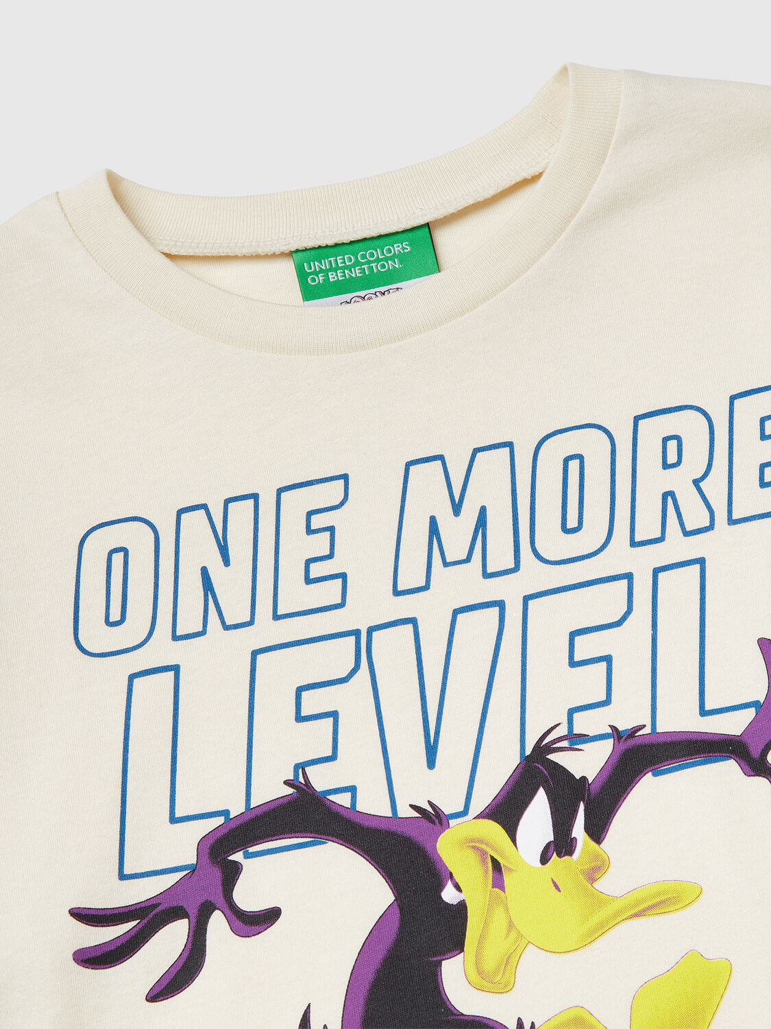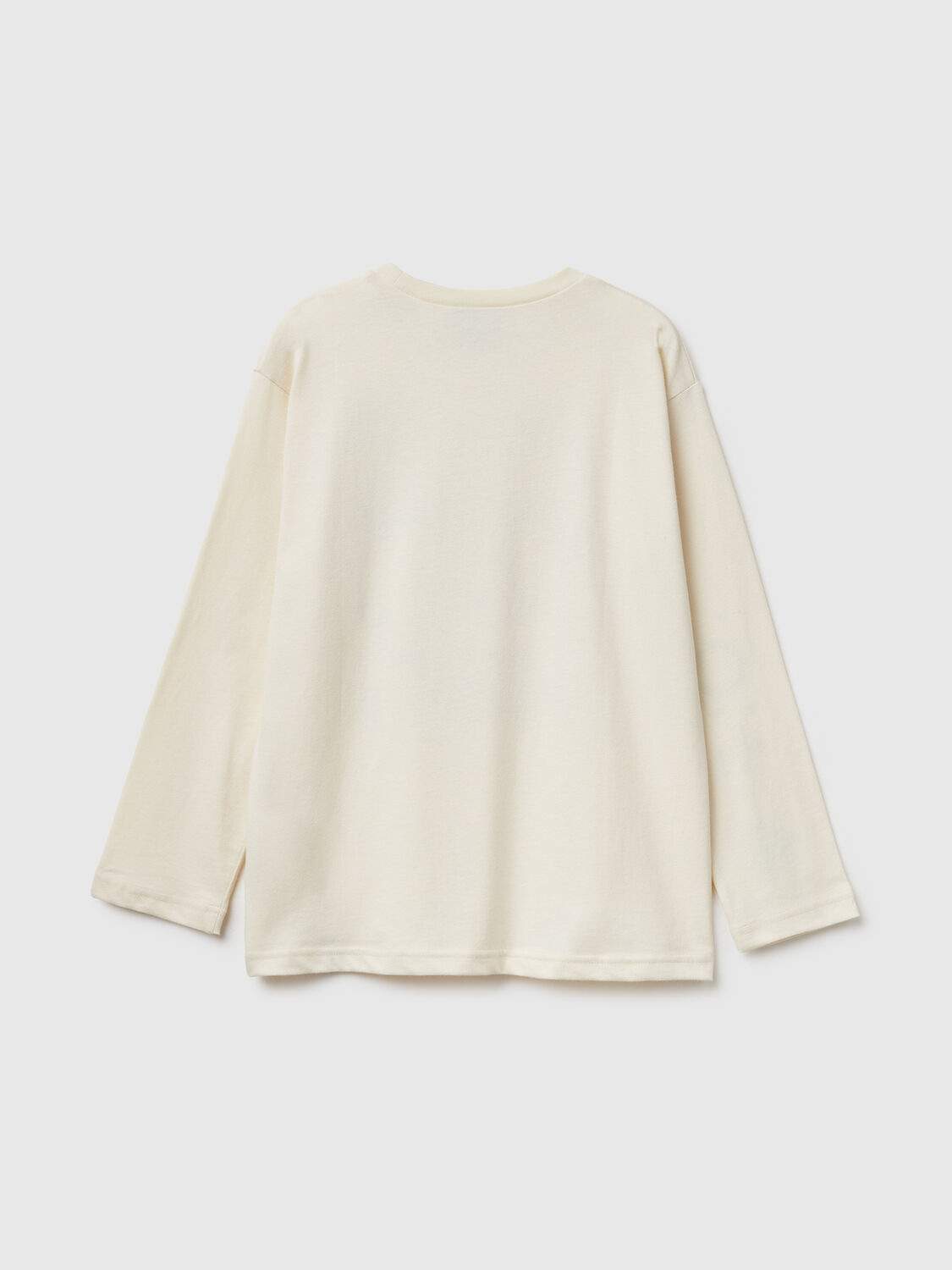 Majica dugih rukava sa okruglim izrezom od toplog organskog pamuka. Višebojni fotografski print sa gejmerskom tematikom i reljefnim detaljima.