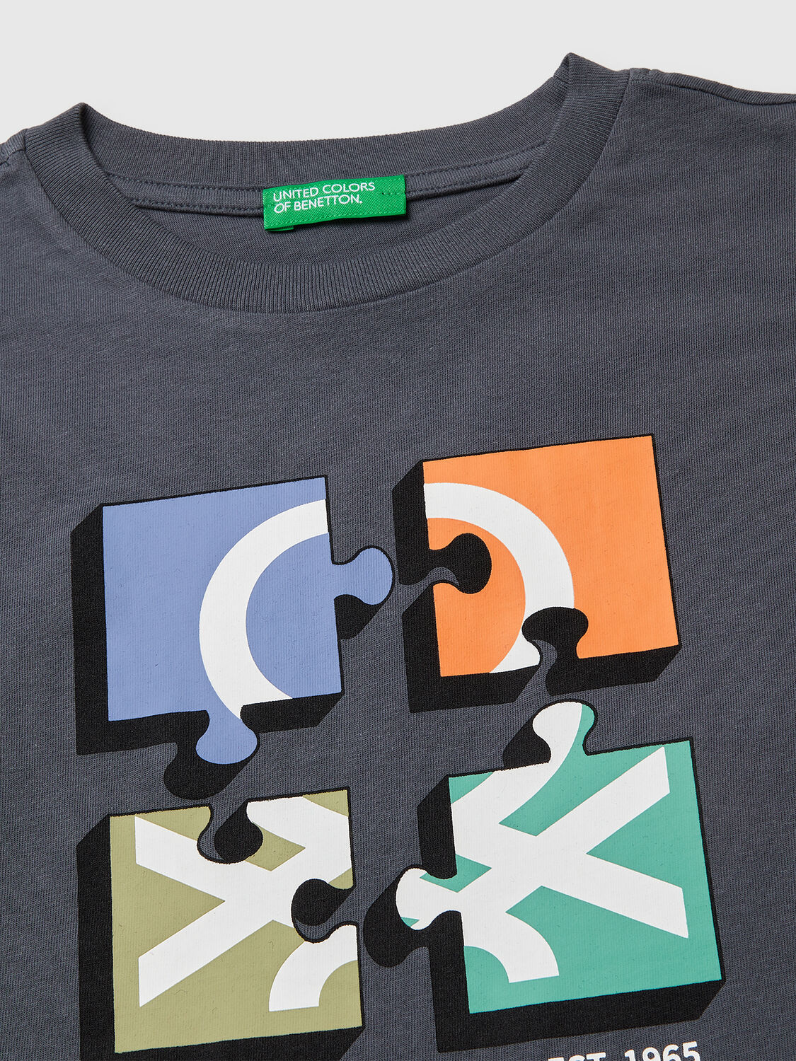 Majica sa okruglim izrezom i kratkim rukavima od mekog organskog pamuka. Uobičajenog kroja i višebojnog logotipa na prednjoj strani.
