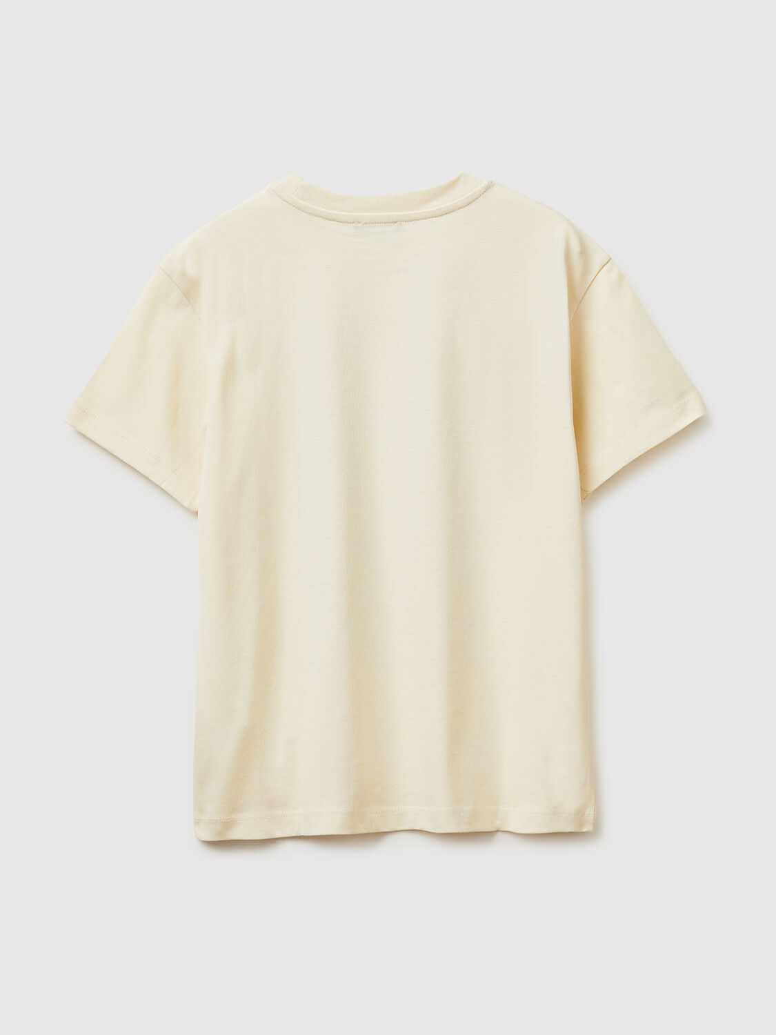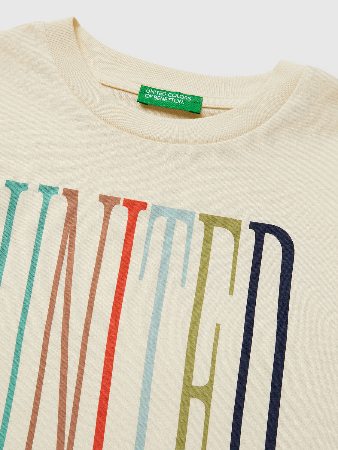 Majica sa okruglim izrezom i kratkim rukavima od mekog organskog pamuka. Uobičajenog kroja i višebojnog logotipa na prednjoj strani.