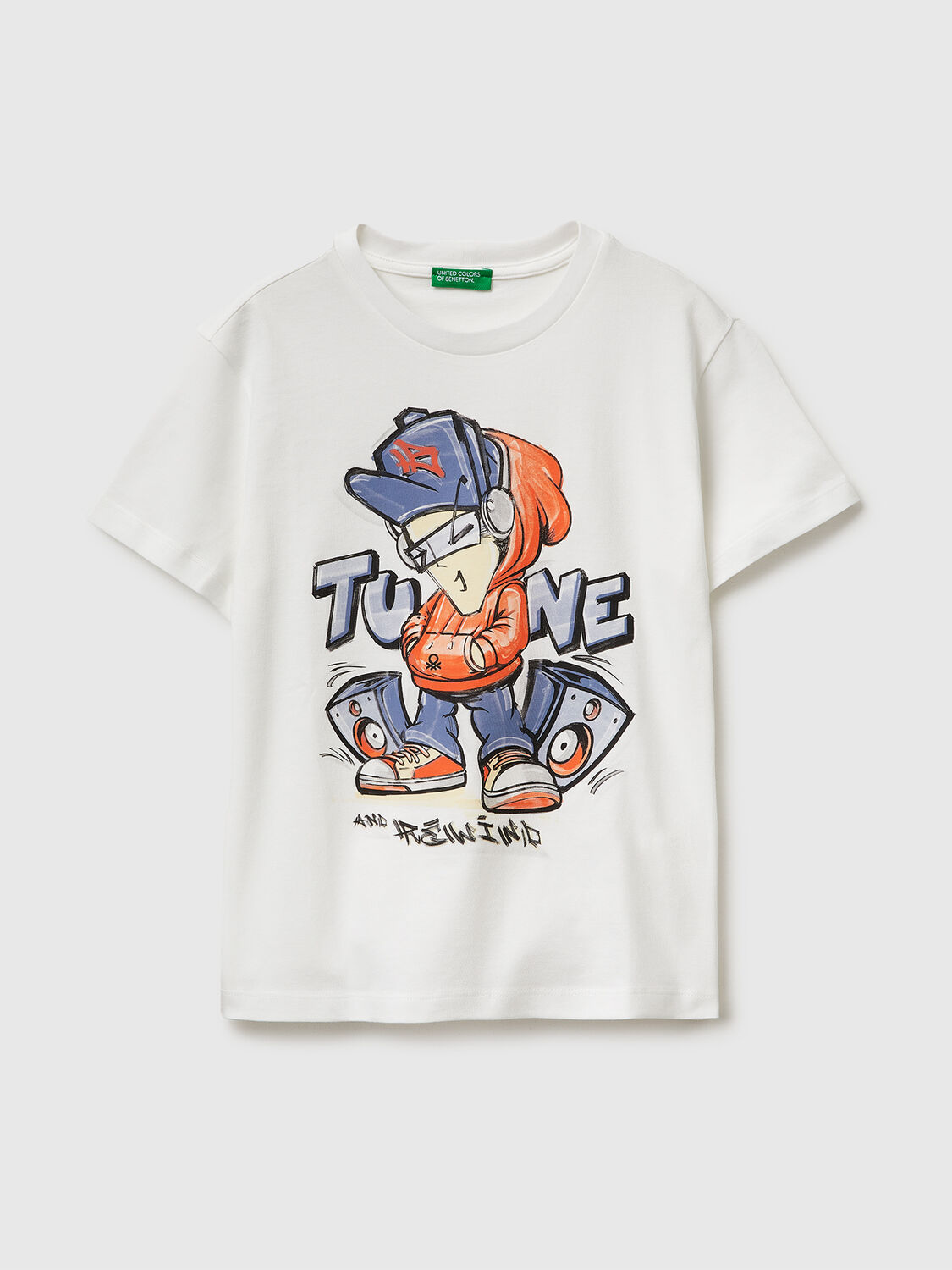 Majica sa okruglim izrezom, kratkim rukavima i štampom na prednjoj strani.