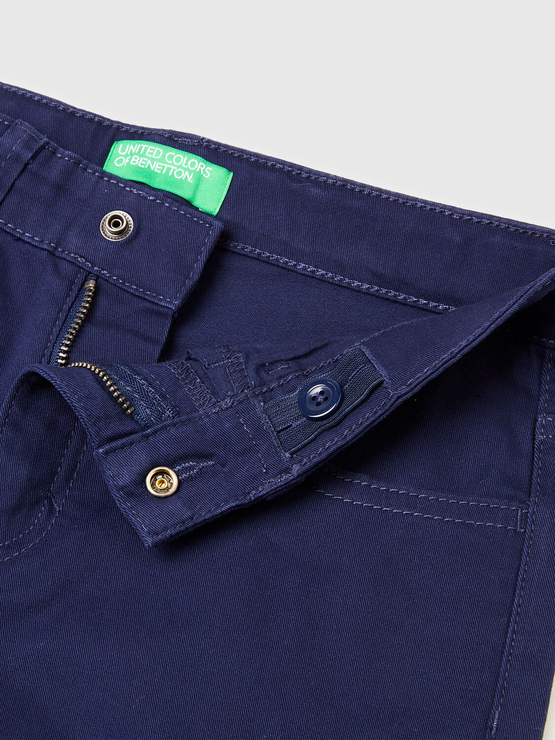 Duge pantalone od mekog rastegljivog pamuka. Model sa pet džepova, zakopčavanje na prednji patentni zatvarač i dugmad. Podesivi unutrašnji elastični pojas. Neverovatno svestrane, savršene za svakodnevno nošenje.