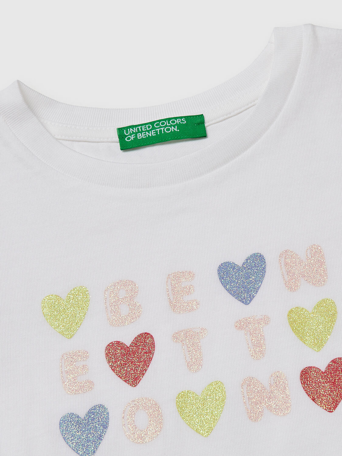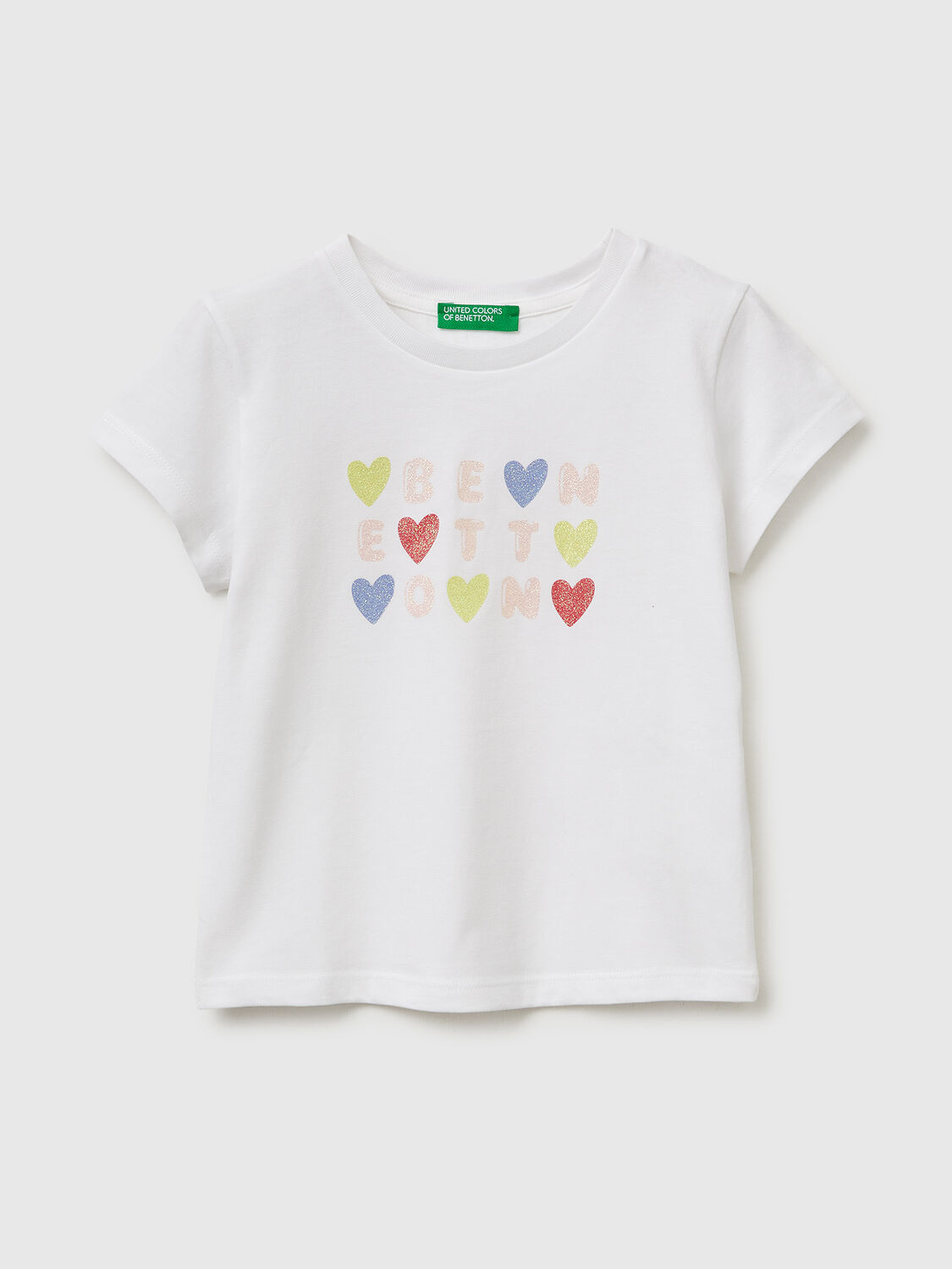 Majica redovnog kroja, kratkih rukava i okruglog izreza, sa šljokicavim logotipom na prednjoj strani.