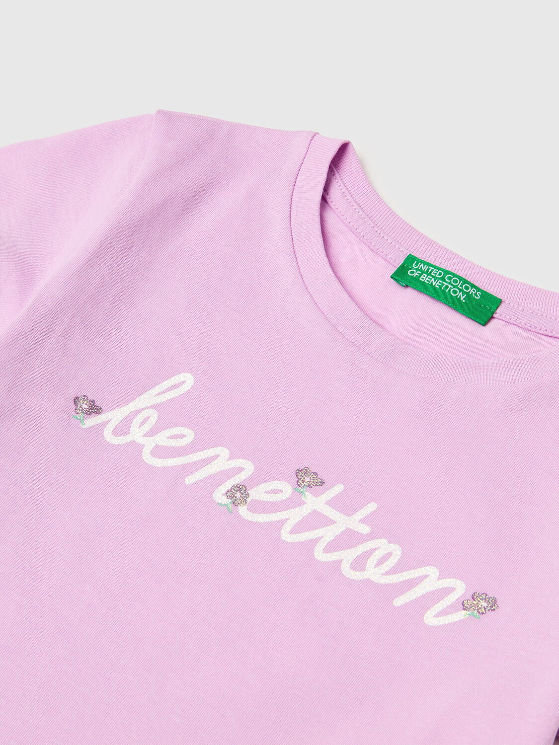 Majica redovnog kroja, kratkih rukava i okruglog izreza, sa šljokicavim logotipom na prednjoj strani.