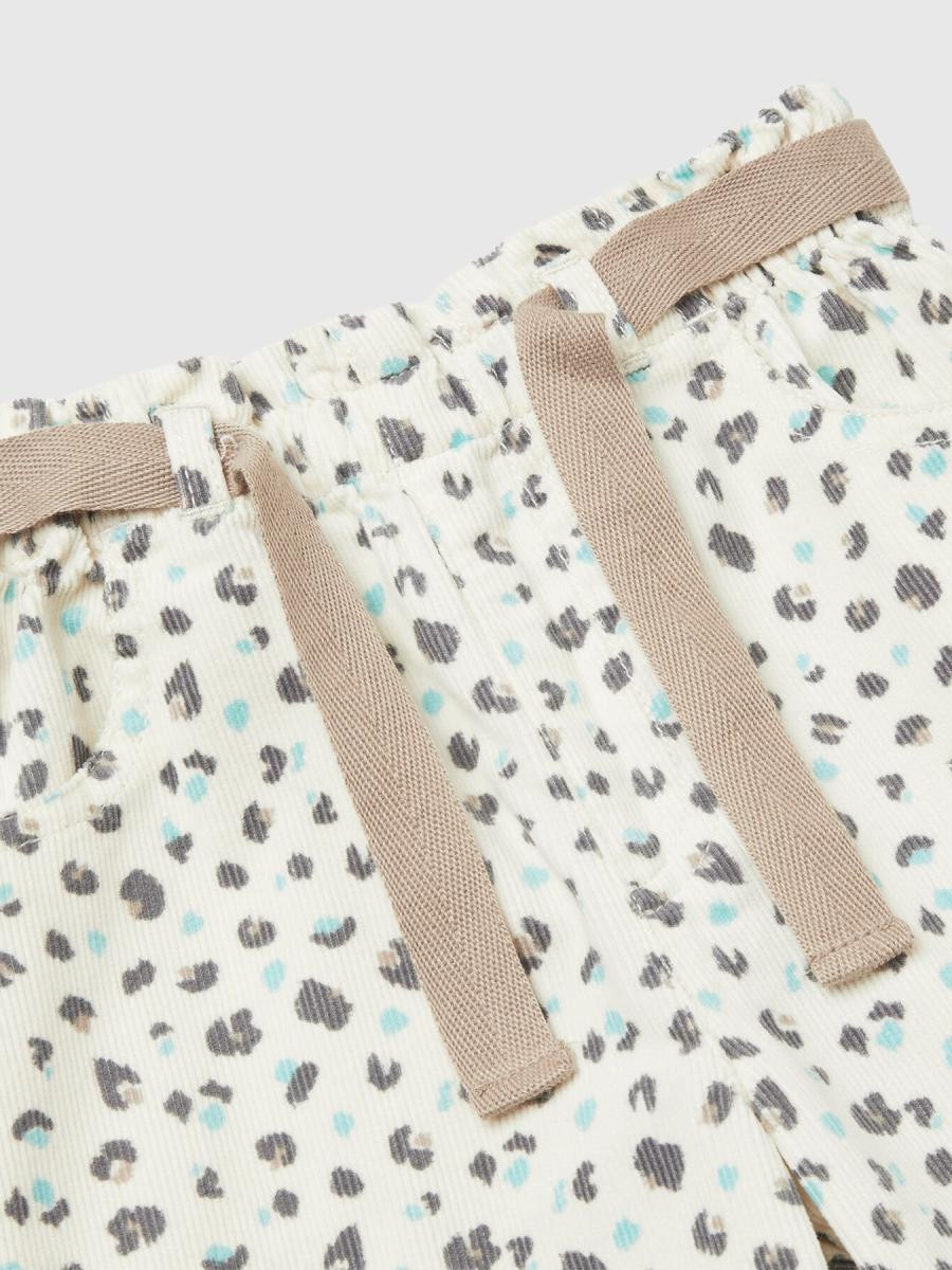 Duge pantalone od čistog pamučnog kordura sa finim rebrastim rubom i dezenom po celoj površini. Struk sa unutrašnjom lastišom i trakom za vezivanje napred. Za šarene i svakodnevne kombinacije.