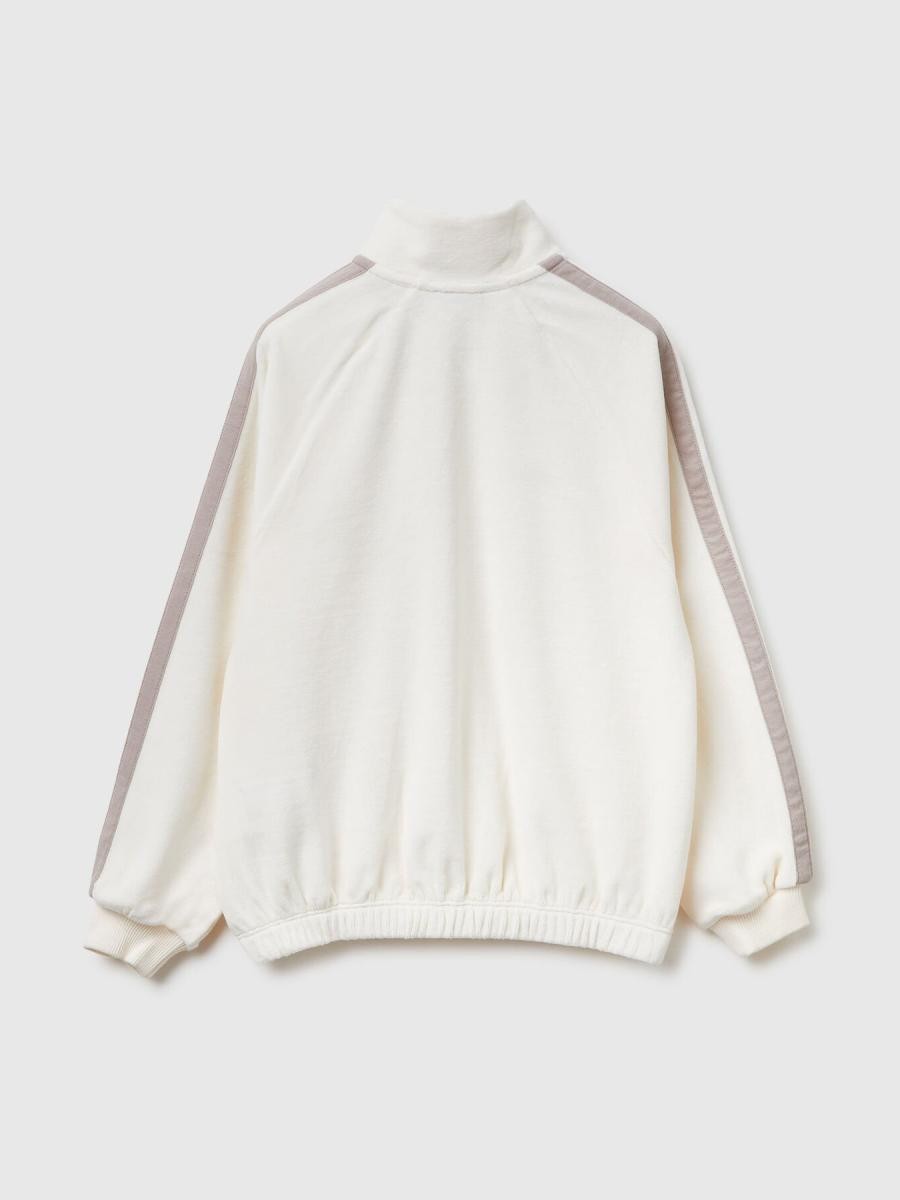 Dukserica sa visokim izrezom od meke mešavine pamuka. Pravilan kroj, blago kratka. Dugi raglan rukavi sa trakama koje se spajaju, prednje otvaranje sa patentnim zatvaračem i rastegljivi donji deo. Praktična i udobna, za moderan sportski izgled.