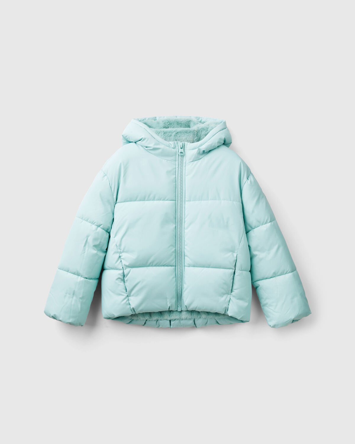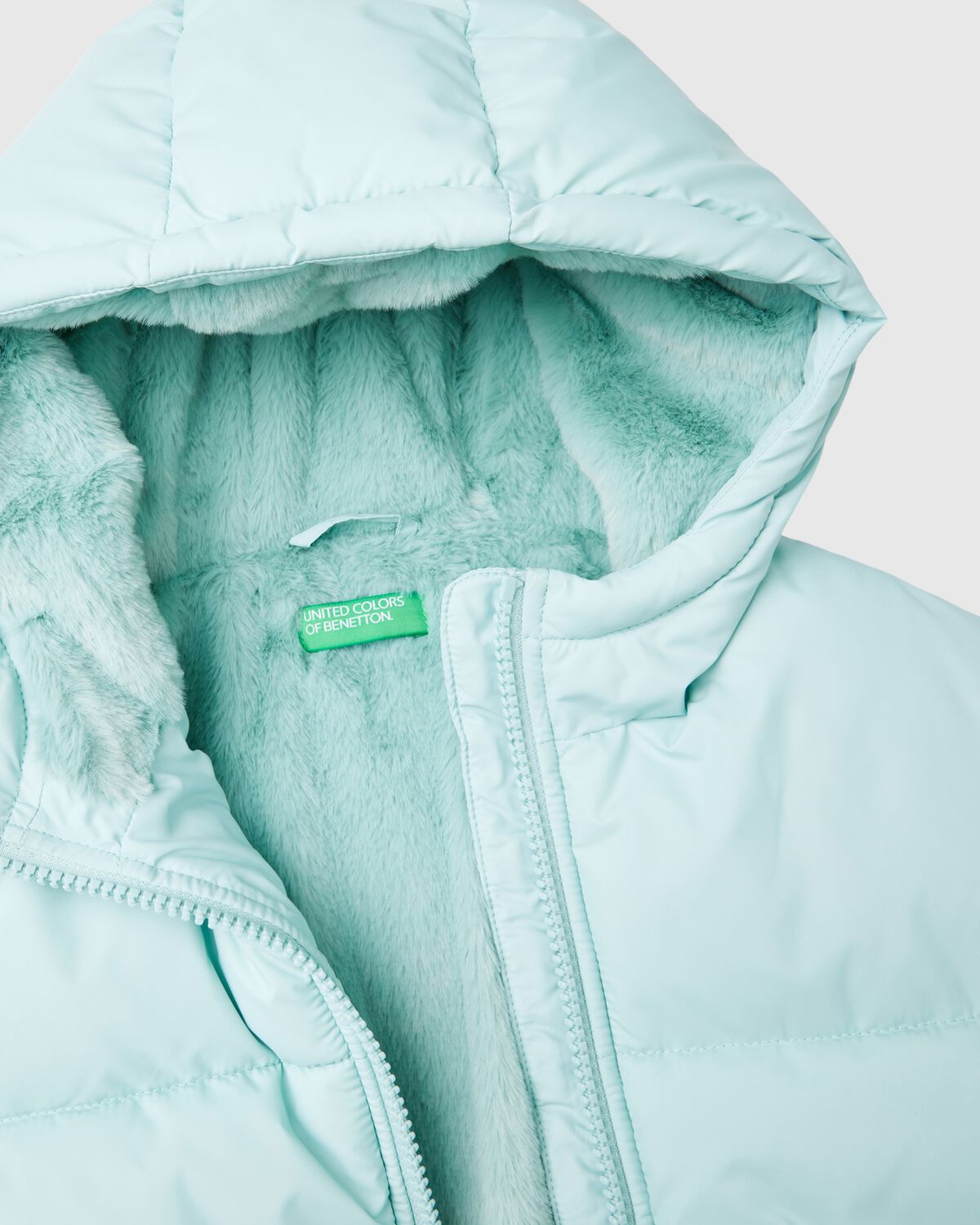 Podstavljena jakna od tehničke tkanine „Rain Defender“ sa horizontalnim prošivenjem i postavom od sintetičkog krzna. Topla, ali ultra lagana, sa „Duck Free“ podlogom od 3D vate koja se uvek vraća u svoj oblik. Sa kapuljačom i rajfeslusem. Usklađeni izvezeni logo na rukavu i praktični prednji džepovi. Odevni predmet „Easy Care“ koji se može prati u mašini za veš i sušiti u mašini za sušenje veša, prateći uputstva na etiketi.