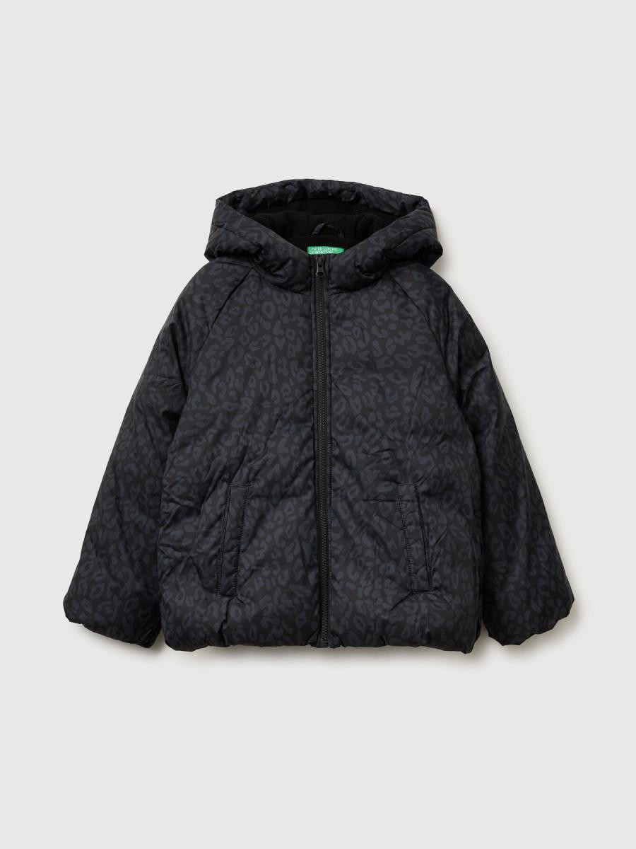 Punjena jakna od tehničke tkanine „Rain Defender“ sa životinjskim printom. Topla, ali ultra lagana, sa „Duck Free“ punjenjem od 3D vate koje se uvek vraća u svoj oblik. Opremljena kapuljačom, umetnutim prednjim džepovima, dugim raglan rukavima. Praktično prednje otvaranje sa rajfešlusom do brade. „Easy Care“ komad koji se može prati i sušiti u mašini za veš, prateći uputstva navedena na etiketi.
