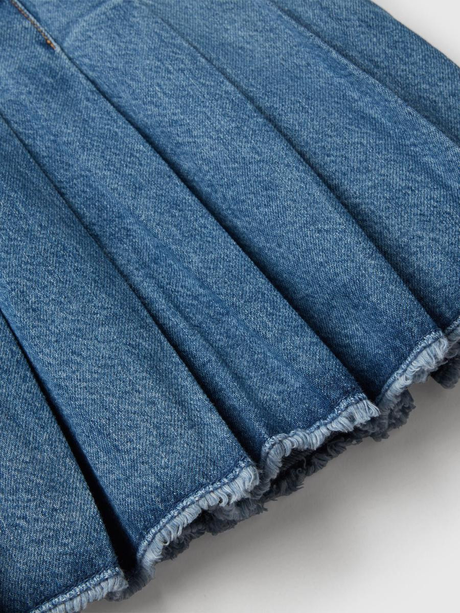 Teksas suknja od čistog pamuka dužine iznad kolena. Zvonasti kroj sa zatvaranjem na patentni zatvarač i dugmad sa strane. Dizajn sa naborima, za kul odevne kombinacije pune ličnosti.