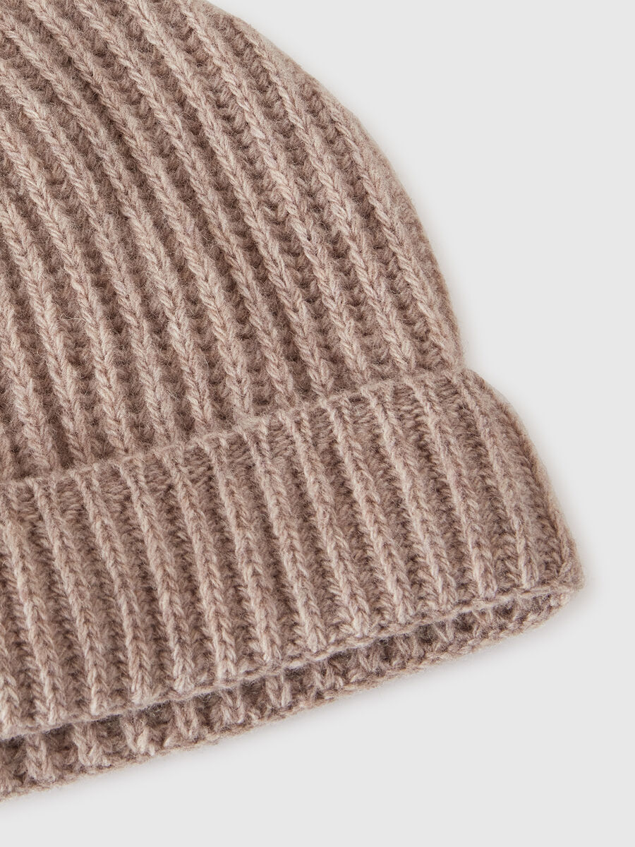 Kapa napravljena od viskoze, kašmira i mešavine vune. Rebrasti donji deo koji se može zavrnuti i izvezeni logo na prednjoj strani. Dodatak čistog kroja, idealan za hladnije dane.