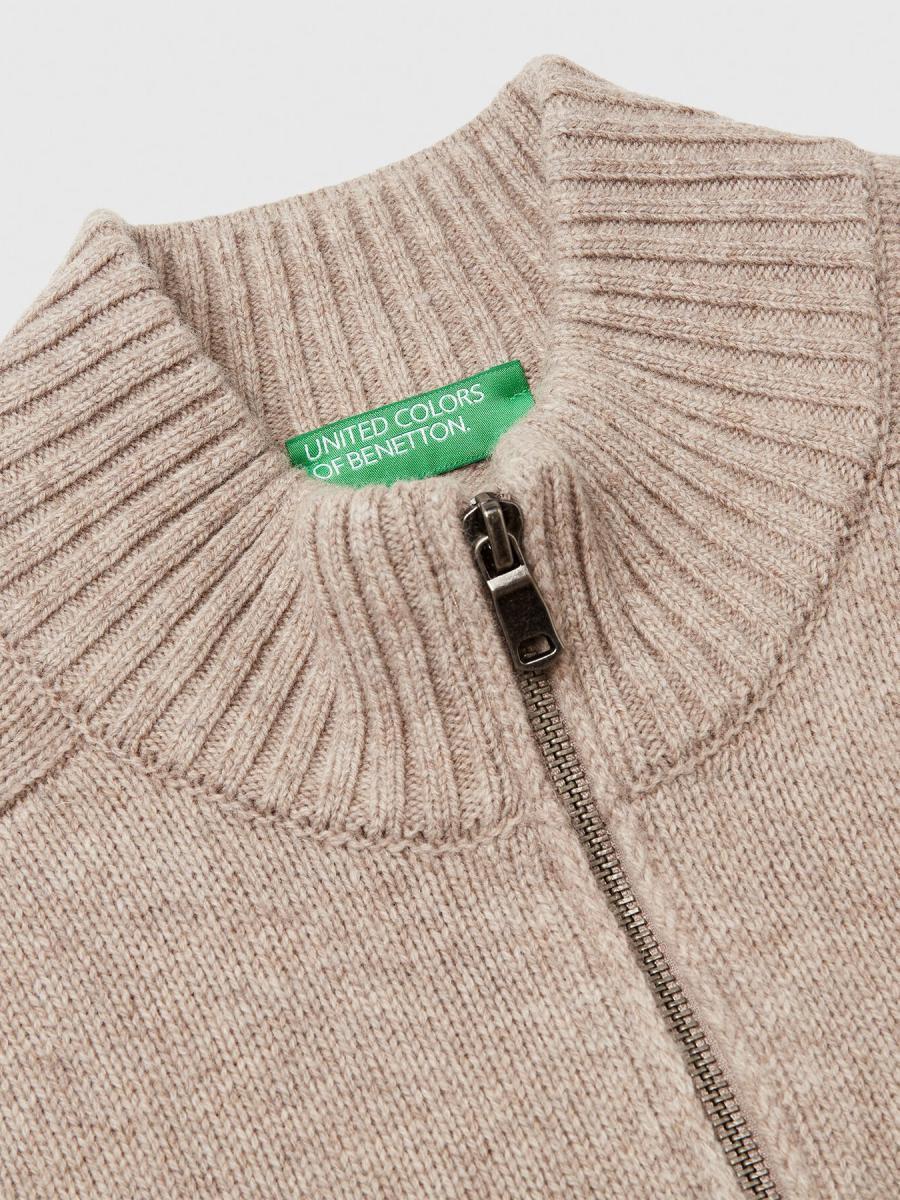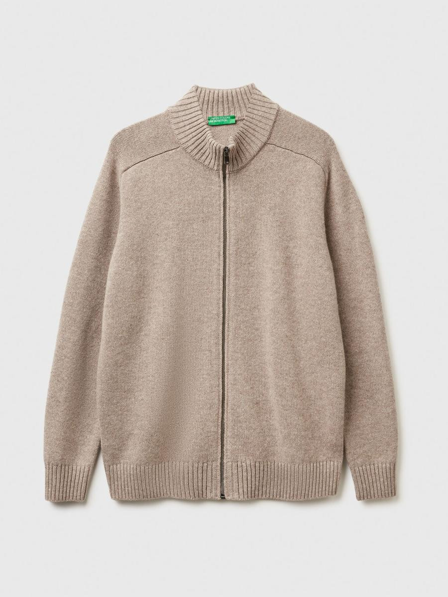 Kardigan sa rol kragnom od čiste merino vune, topao, lagan i prijatan na dodir. Dugi raglan rukavi i zatvaranje rajfešlusom. Idealan kao dodatni sloj odeće.