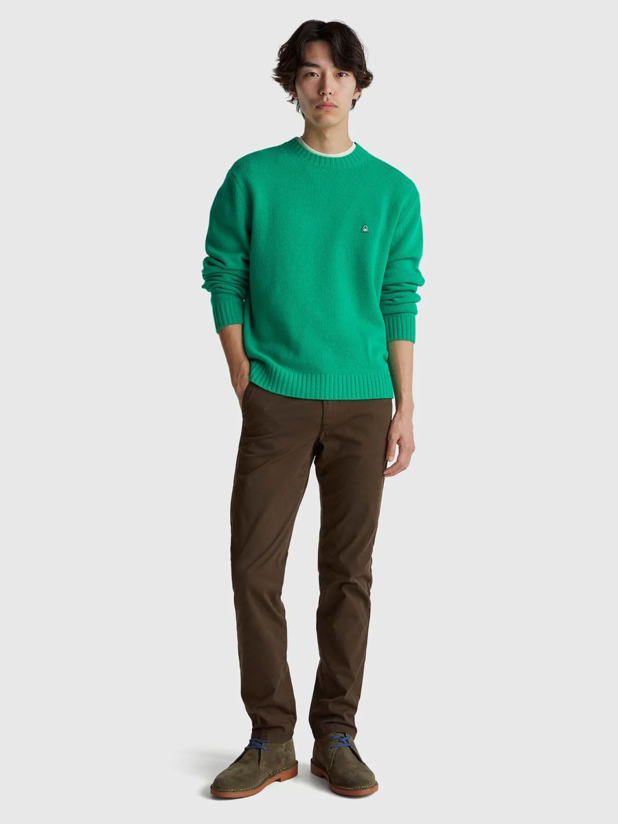 Džemper dugih rukava sa okruglim izrezom od meke mešavine vune. Našivka sa logoom na levoj strani grudi. Jednostavan i svestran, savršen čak i preko košulje.