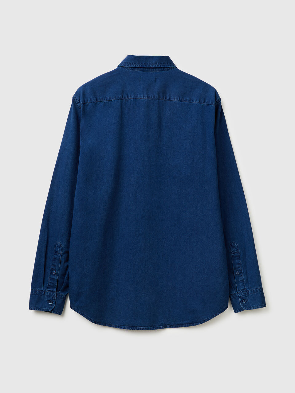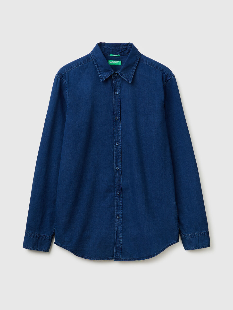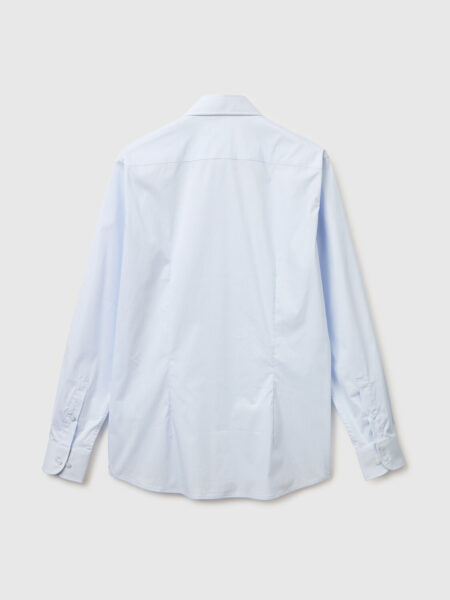 Košulja dugih rukava od mešavine pamuka i liocel šambrea sa uskim krojem. Klasična kragna, prednji otvor sa dugmadima i zaobljenim dnom. Moderan i udoban.