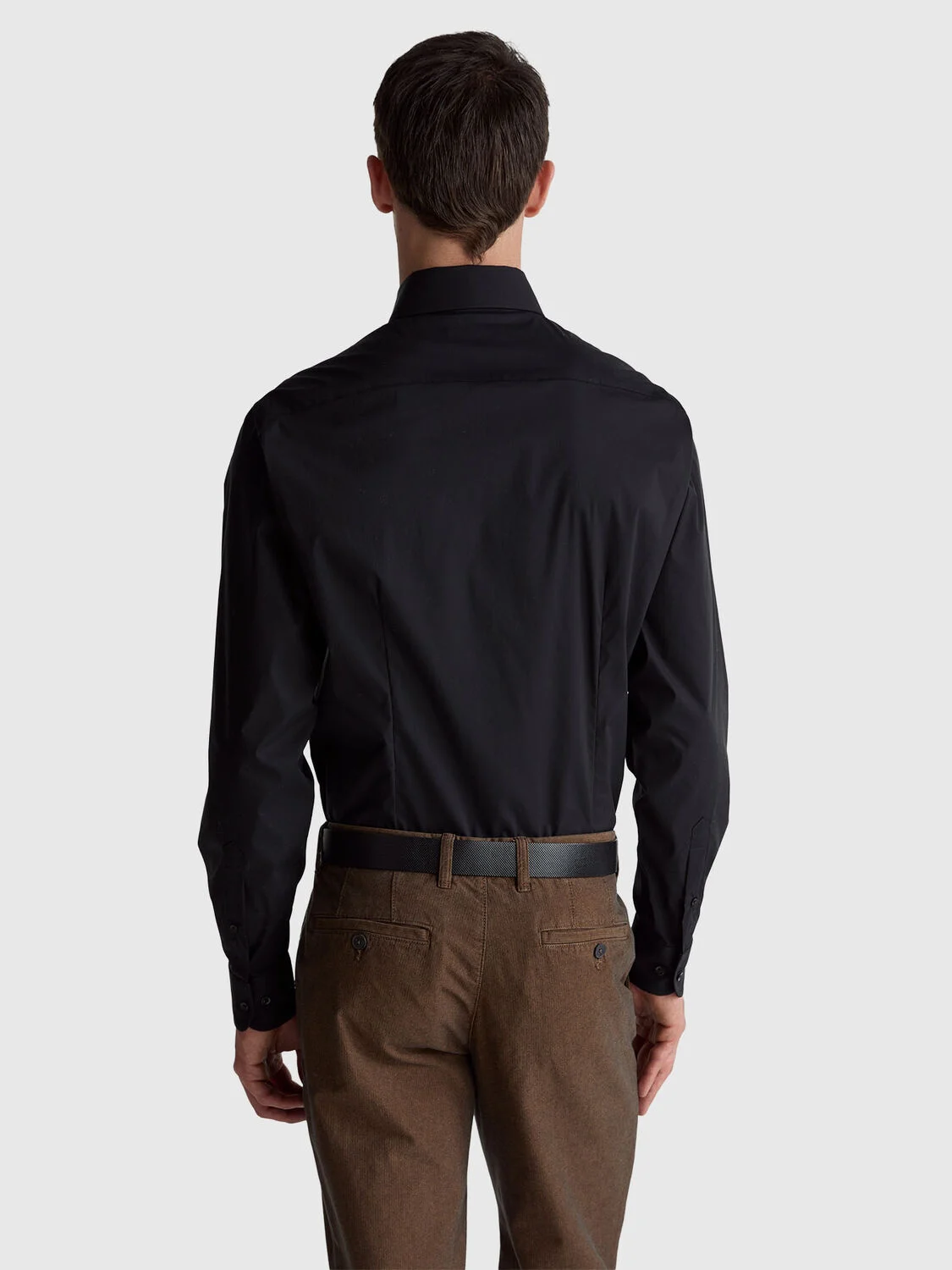Košulja od rastegljive mešavine pamuka uskog kroja. Klasična kragna i prednje zatvaranje sa dugmadima u obliku sedefa. Minimalistički stil za obavezan komad garderobe.