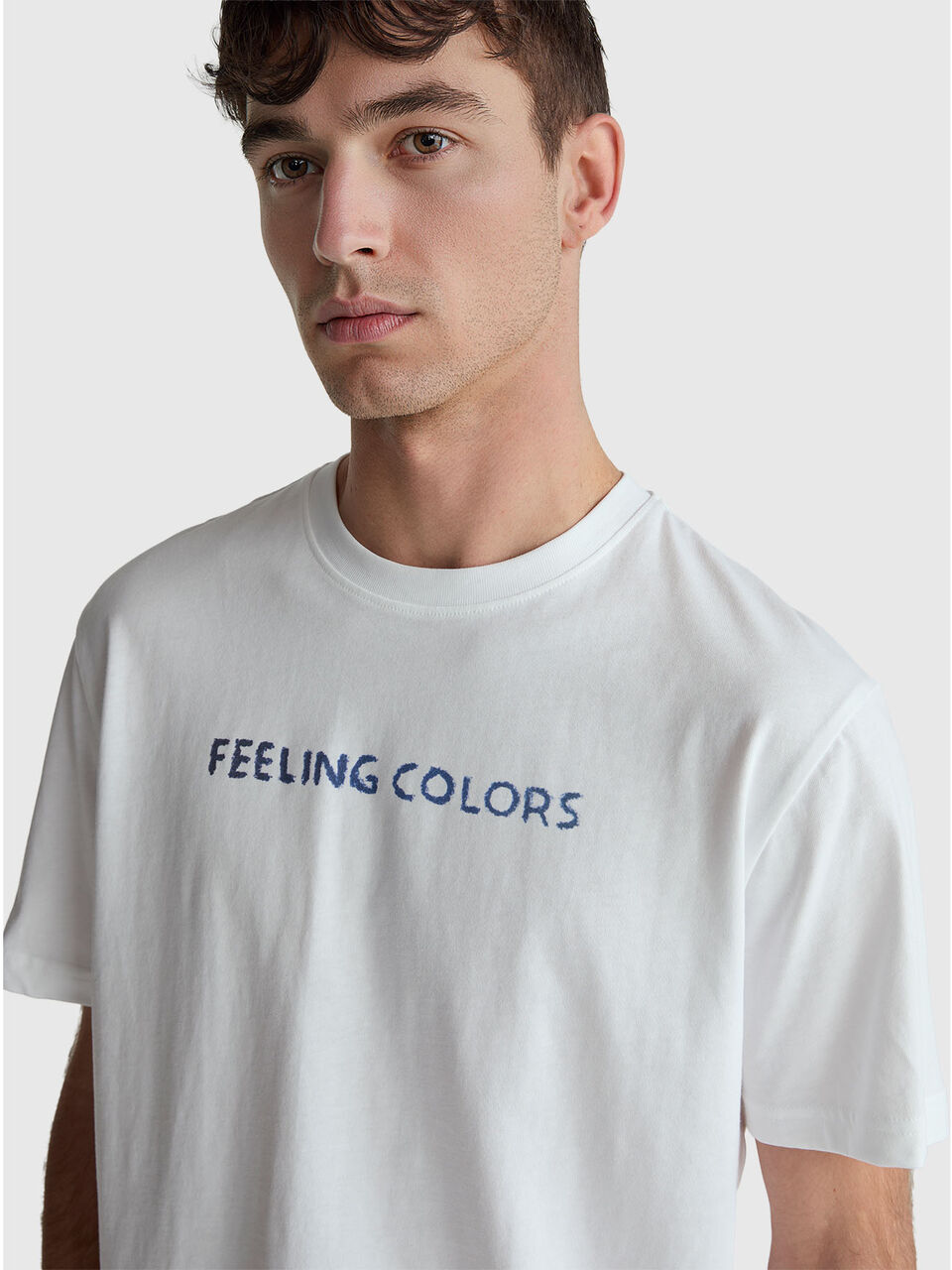 Majica sa okruglim izrezom kratkih rukava opuštenog kroja. Šarena štampa na prednjoj strani i slogan na zadnjoj strani. Ova odeća je napravljena od 100% organskog pamuka sa OCS sertifikatom. SERTIFIKOVANO OD ICEA – ICEA – TKS – 611. Proizvodi sertifikovani u skladu sa Standardom za organski sadržaj (OCS) sadrže nezavisno verifikovani organski sadržaj u svakoj fazi lanca snabdevanja, od reciklaže do gotovog proizvoda.