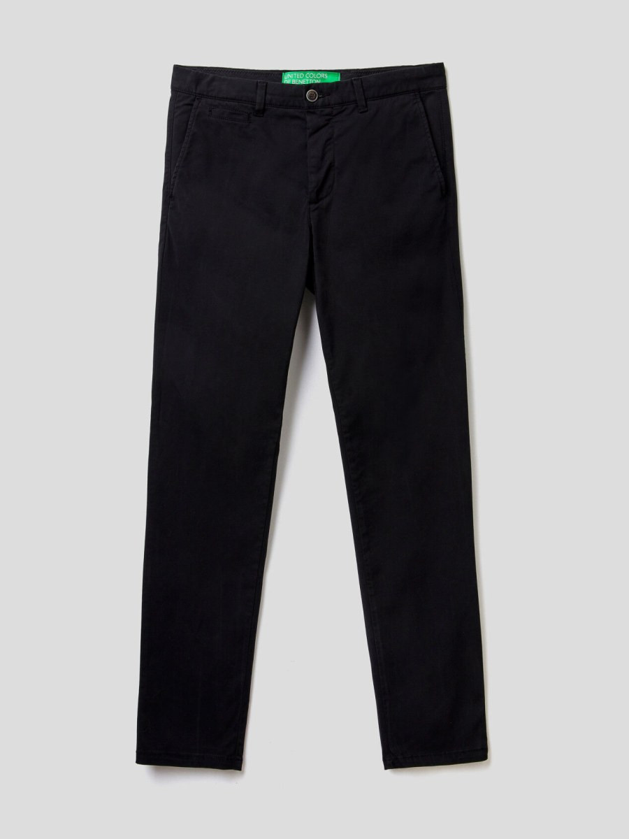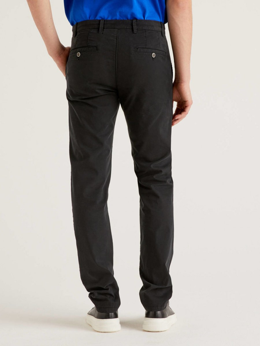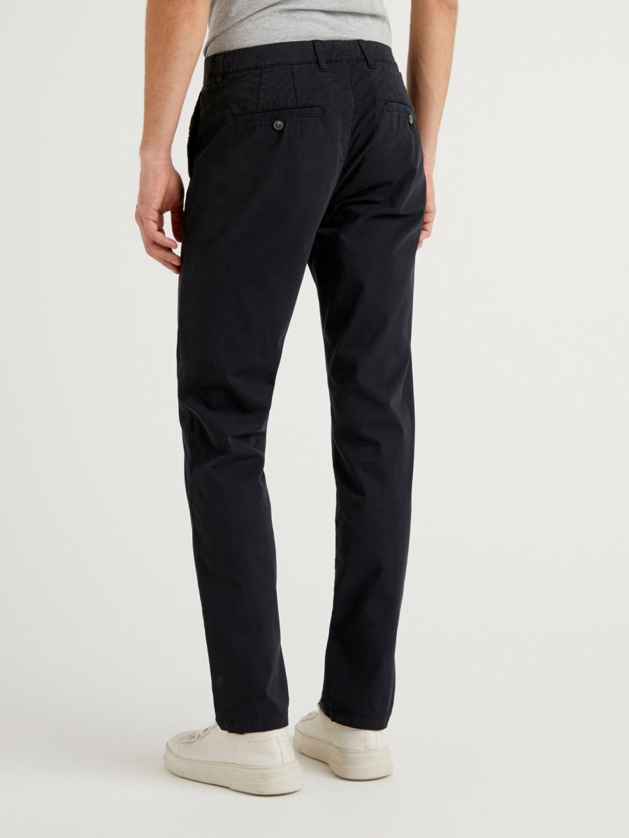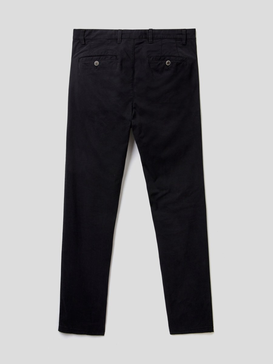 Duge čino pantalone od rastegljivog pamuka uskog kroja, pogodne za kancelariju i slobodno vreme. Prednji i zadnji džepovi, dodatni džep napred, nabori pozadi i omče za kaiš u struku za ležeran izgled.