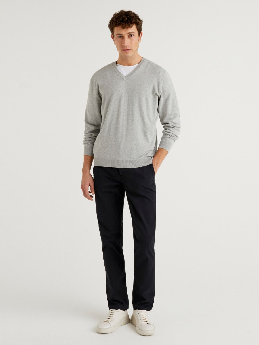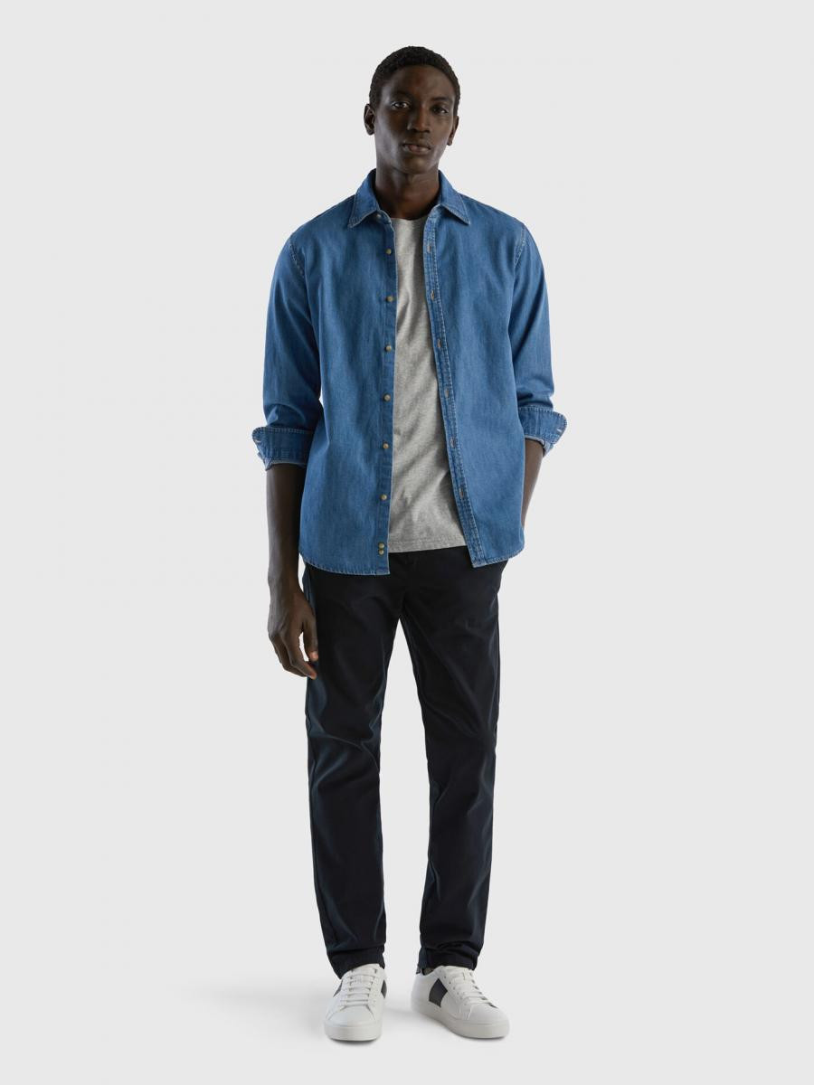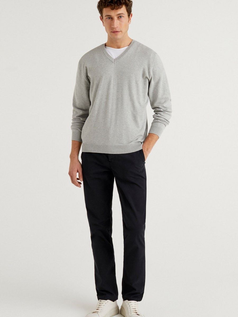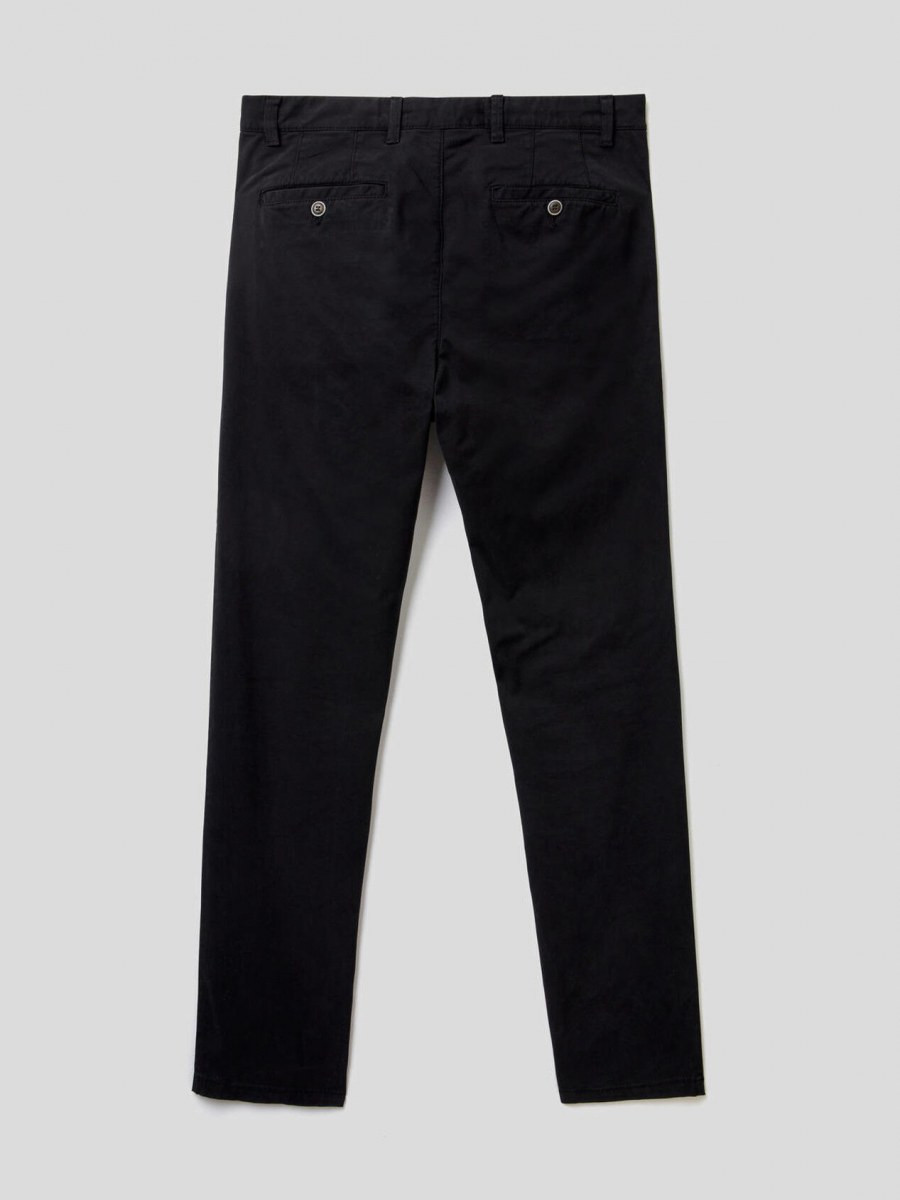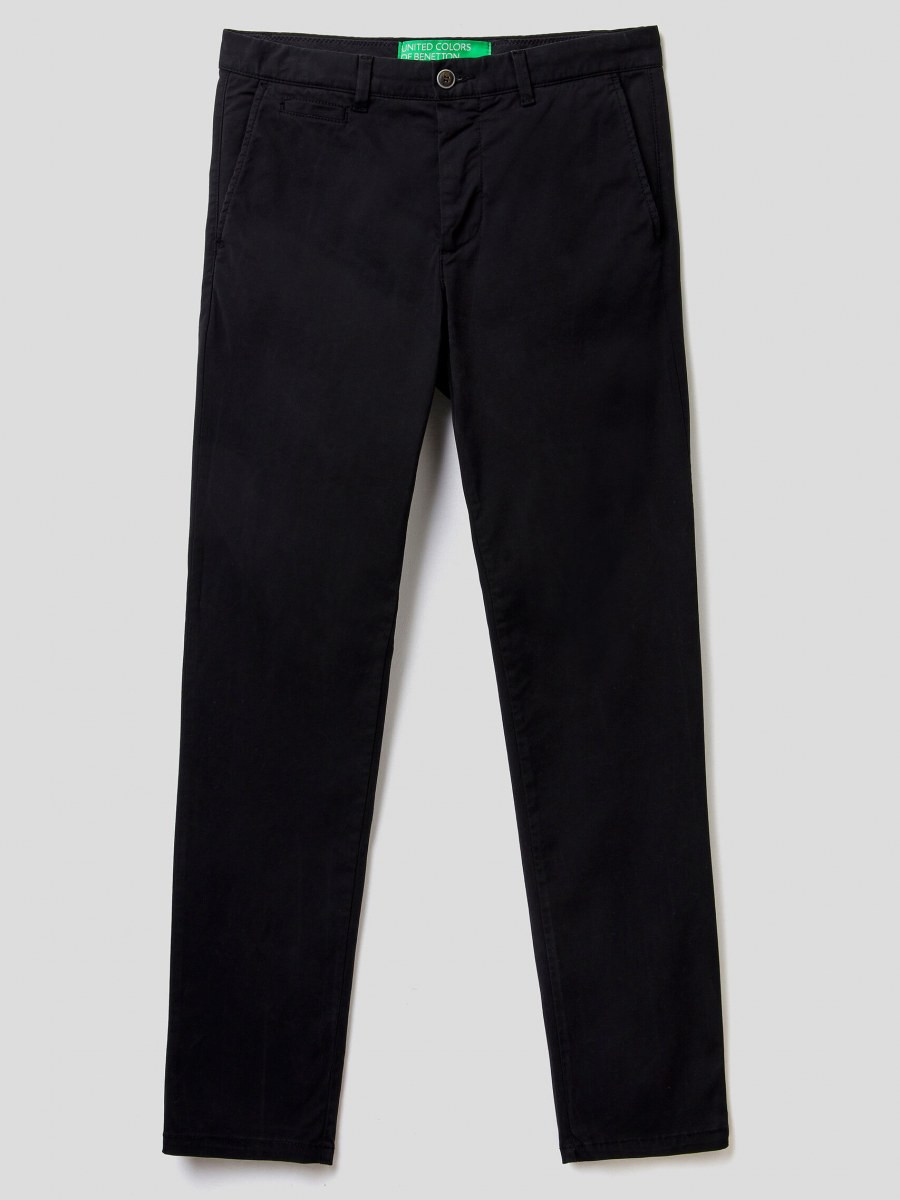 Duge čino pantalone od rastegljivog pamuka uskog kroja, pogodne za kancelariju i slobodno vreme. Prednji i zadnji džepovi, dodatni džep napred, nabori pozadi i omče za kaiš u struku za ležeran izgled.