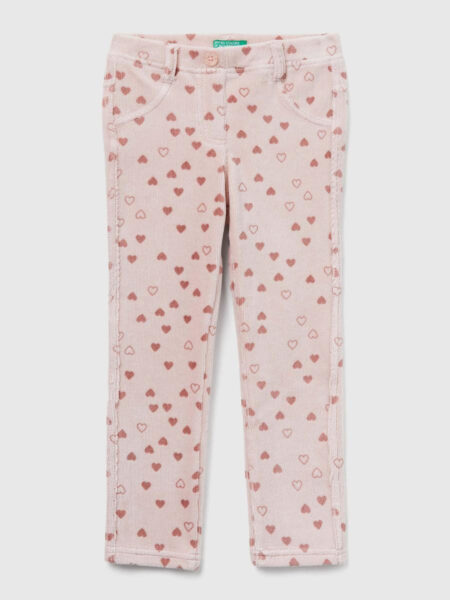 Duge pantalone od rebrastog elastičnog šenila. Super uskog kroja sa normalnim strukom. Prednji lažni džepovi i ukrasno dugme u struku. Pozadi sa jarmom i našivenim džepovima, od kojih jedan ima izvezeni logo. Kombinuju se sa prevelikim džemperom za ležeran i moderan izgled.