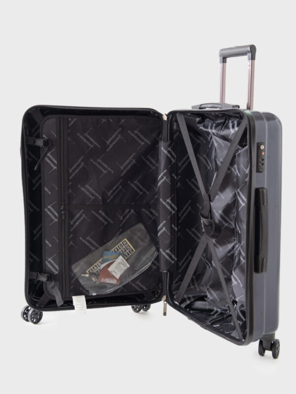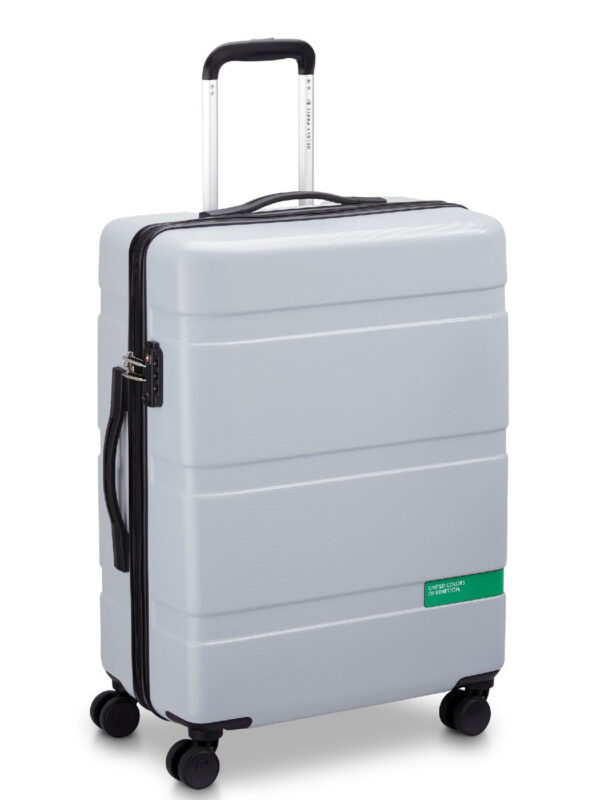 Benetton kofer srednje veličine, 100% ABS sa četiri rotirajuća točka i TSA sistemom zaključavanja. Ukloniv graničnik i dva unutrašnja prostora. Adaptabilna ručka i dve gumene ručke. Dimenzije: 62x43x28cm. Litraža: 74,70lt. Težina: 4,4kg.