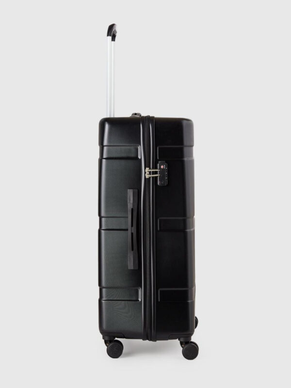 Benetton kofer srednje veličine sa četiri točkića 100% poliester sa adaptabilnom drškom obložena tkaninom zbog lakšeg transporta. Gornja strana kofera ima višestruke funkcionalne pregrade. Dimenzije: 68x43x27cm. Litraža: 78lt. Težina: 2,9kg.