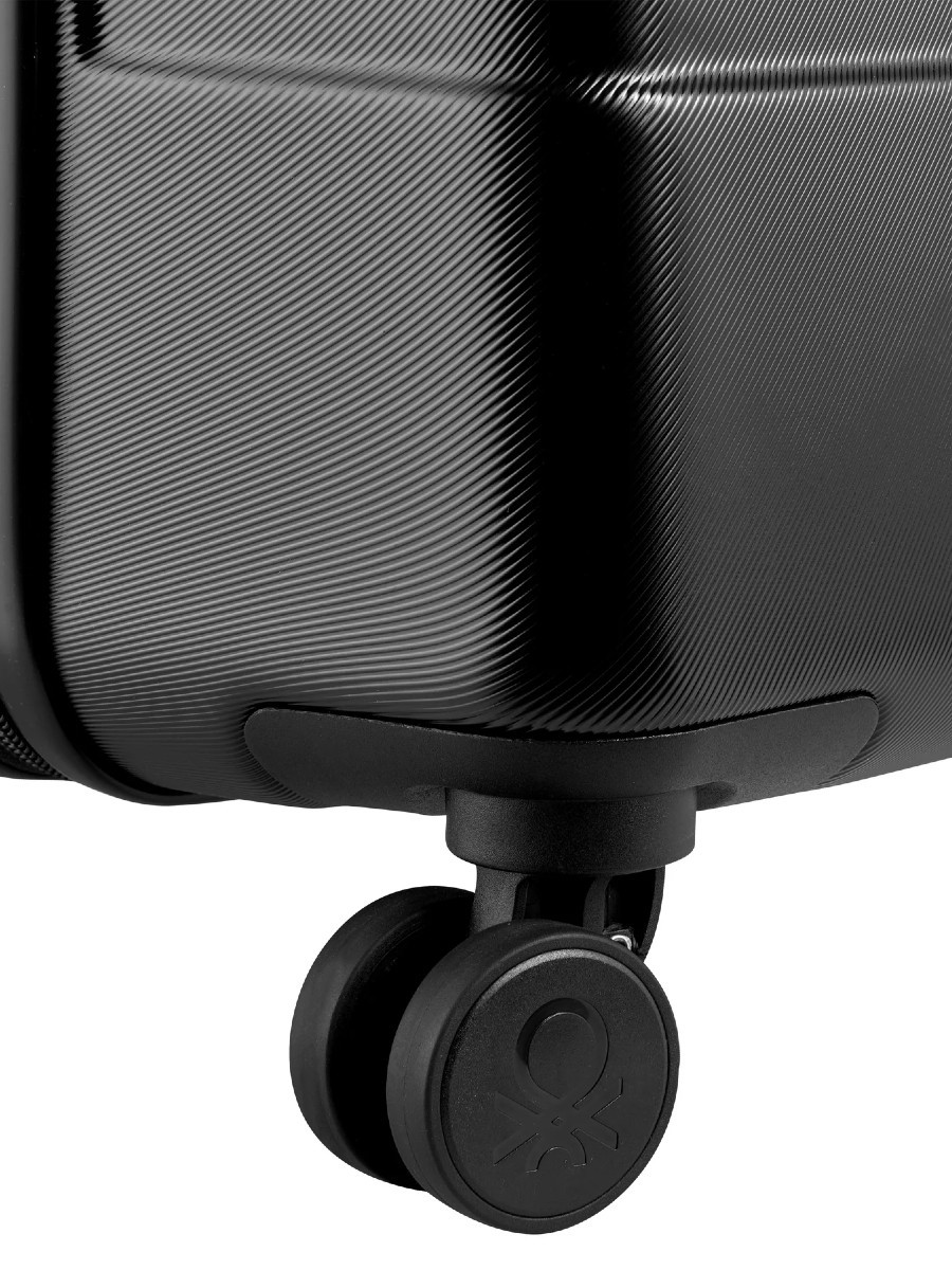 Benetton kofer izrađen od 70% ABS + 30% POLYCARBONATE materijala. Težina: 4,5 kg, dimenzije: 76cm x 51cm x 29cm (uključujući točkove i ručku). Njegov volumen je 93 L