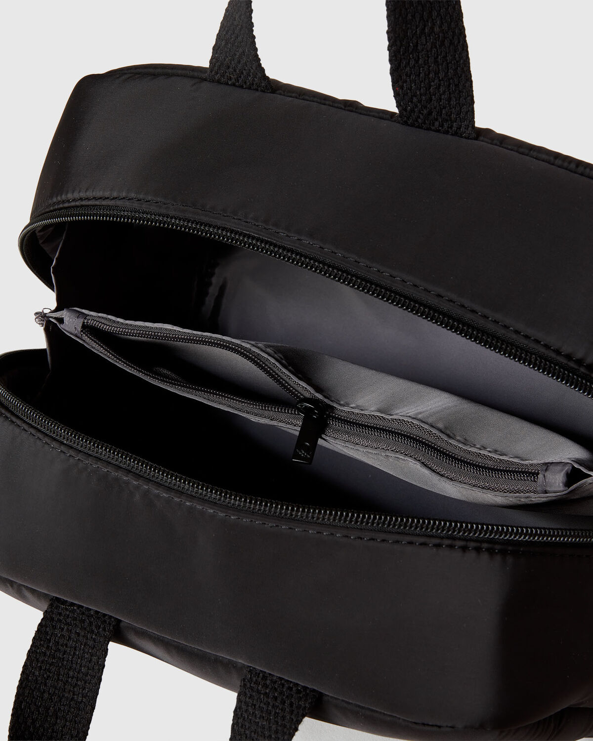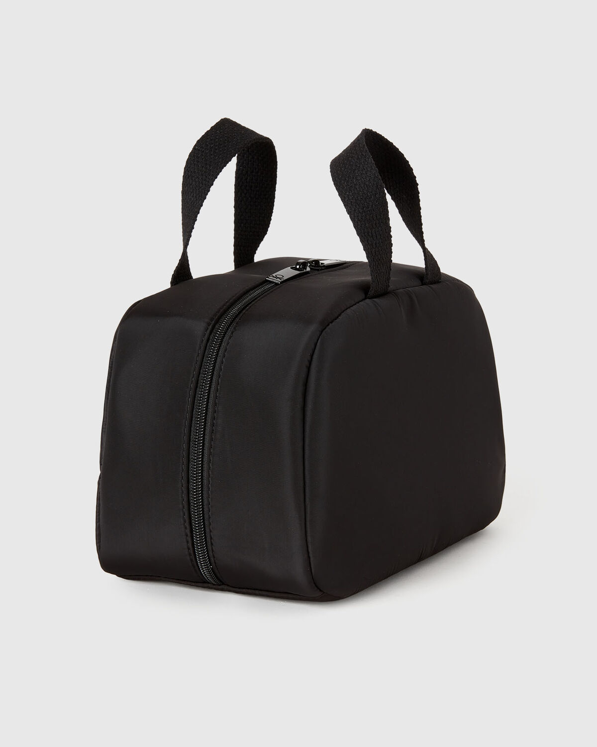 Praktična obložena torba za kozmetiku sa dve ručke i zatvaranjem na rajfeslus. Logo odštampan sa jedne strane.