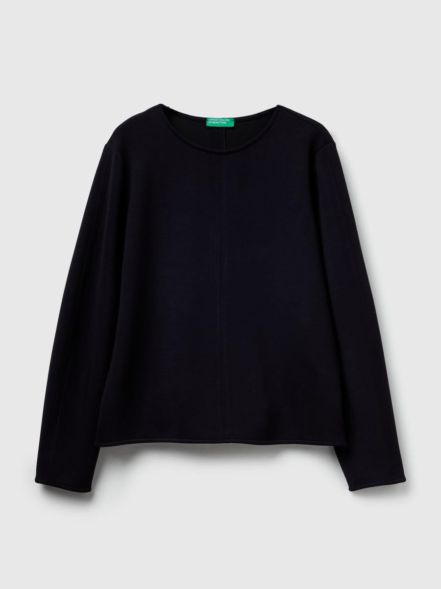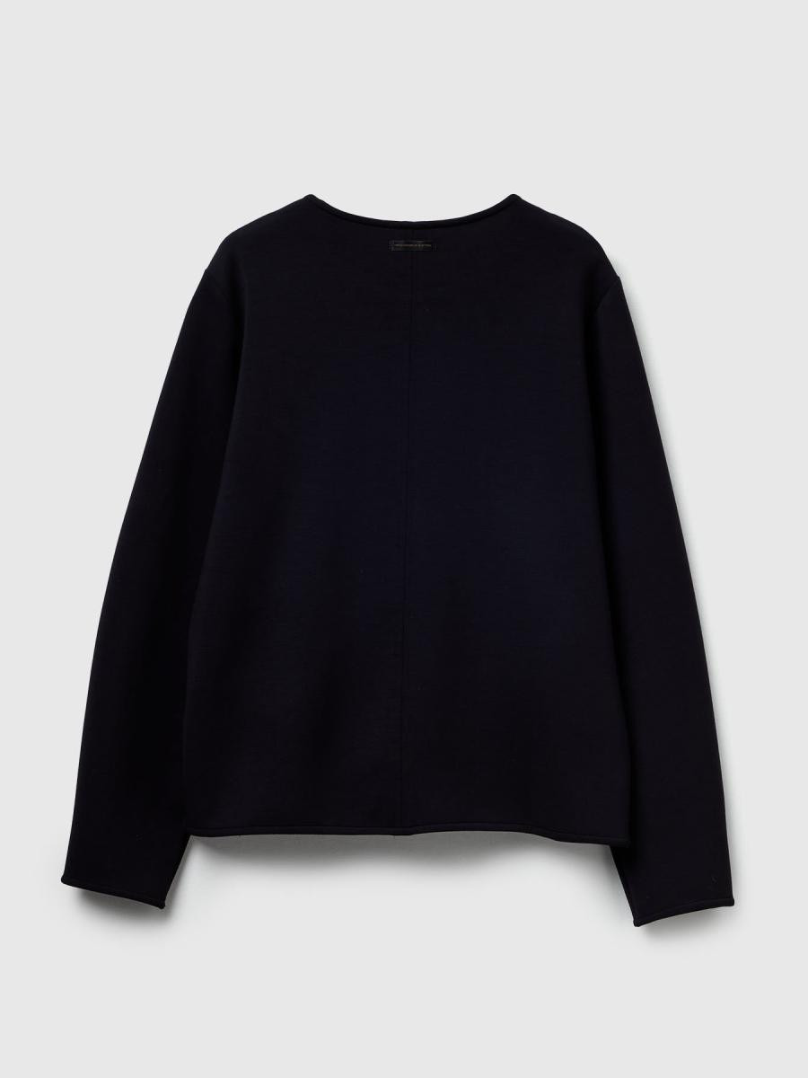Majica dugih rukava od mekog rastegljivog modala. Opuštenog kroja sa okruglim izrezom i izrezom na sredini napred i pozadi. Za svakodnevne odevne kombinacije, sa notom individualnosti.
