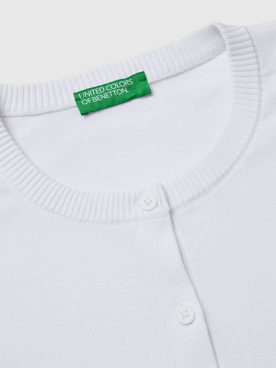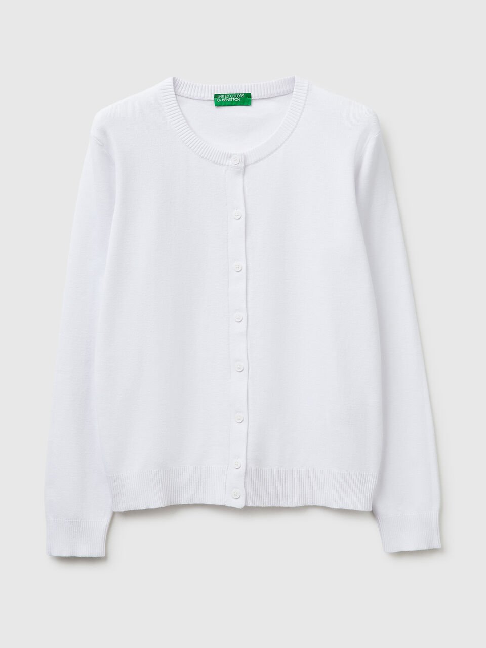Kardigan dugih rukava od meke čiste triko pamučne tkanine pravilnog kroja. Okrugli vrat i prednji otvor sa dugmadima. Savršeno kao dodatni sloj.