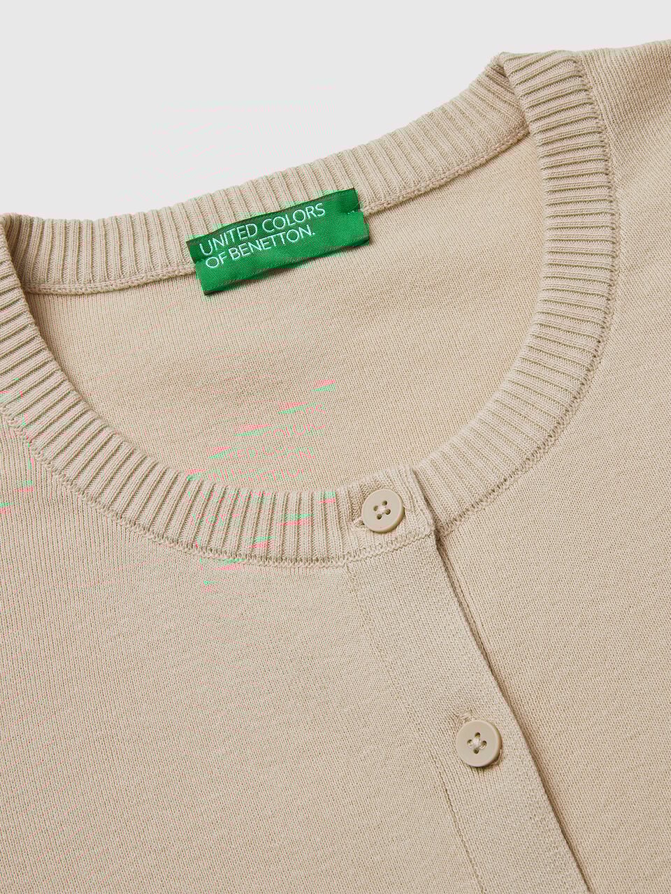 Kardigan dugih rukava od meke čiste triko pamučne tkanine pravilnog kroja. Okrugli vrat i prednji otvor sa dugmadima. Savršeno kao dodatni sloj.
