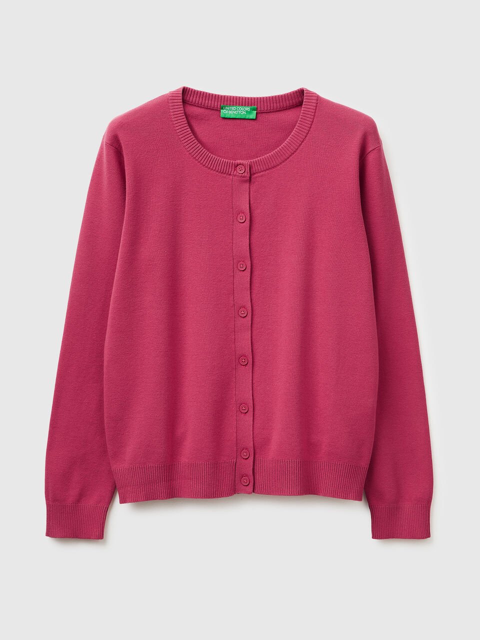 Kardigan dugih rukava od meke čiste triko pamučne tkanine pravilnog kroja. Okrugli vrat i prednji otvor sa dugmadima. Savršeno kao dodatni sloj.