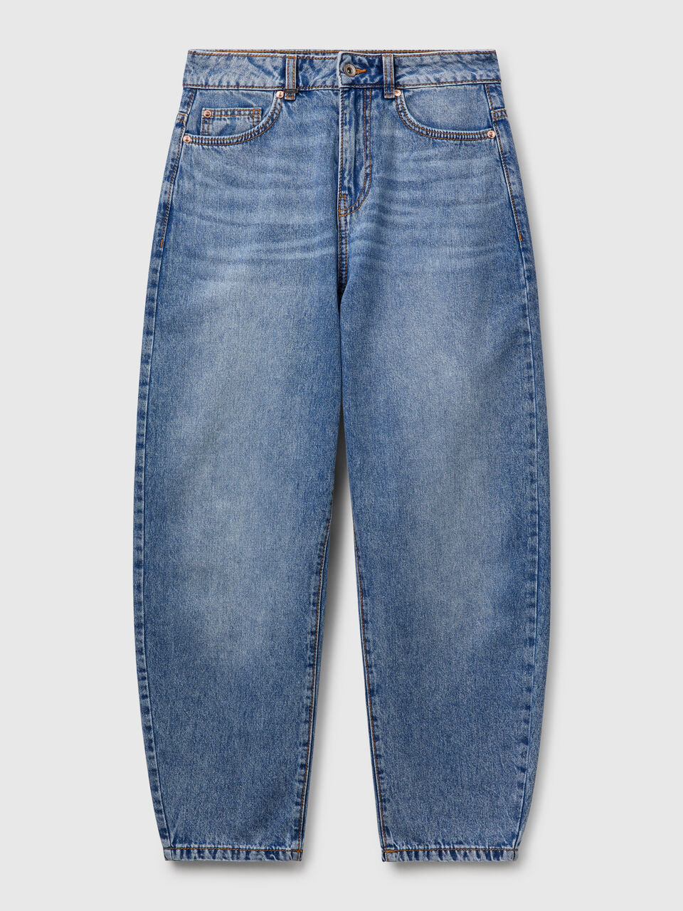 Dugačke pantalone sa pet džepova od čistog pamučnog teksasa. Model balon nogavica, širi na vrhu i uži na dnu. Uobičajen struk sa patentnim zatvaračem i otvaranjem na dugmad. Moderan kroj i nošen izgled, za autentičan izgled. Opušten kroj: predlažemo da smanjite veličinu u odnosu na uobičajenu.