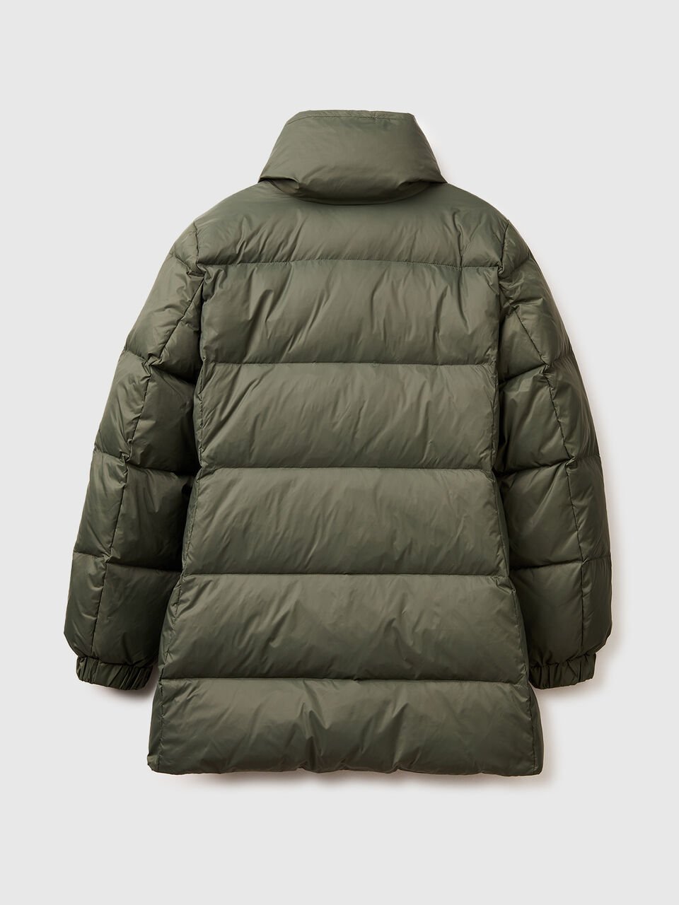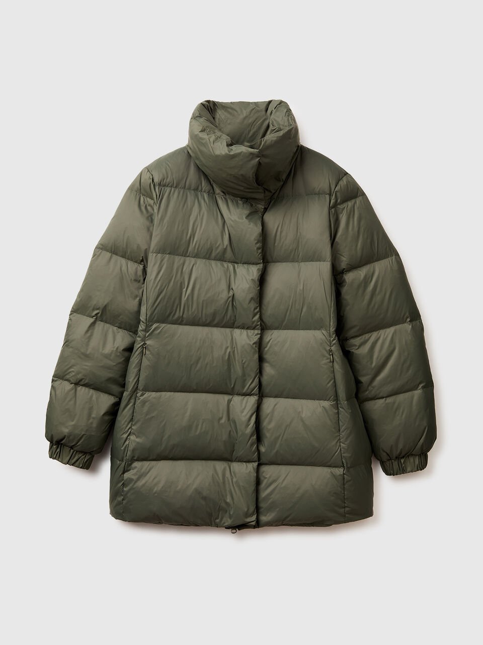 Duga najlonska jakna sa horizontalnim jorganom i jorganom od originalnog recikliranog paperja. Sa odvojivom visokom kragnom. Dužina ispod kukova sa skrivenim patentnim zatvaračem i otvaranjem na dugme. Džepovi umetnuti sa strane. Toplo i udobno, pogodno i za hladnije mesece. Ova odeća je napravljena od najmanje 20% RCS sertifikovanog recikliranog poliamida. SERTIFIKOVANO OD ICEA – ICEA – TKS – 611. Proizvodi sertifikovani prema Standardu za recikliranje (RCS) sadrže reciklirani sadržaj koji je nezavisno verifikovan u svakoj fazi lanca snabdevanja, od reciklaže do gotovog proizvoda.