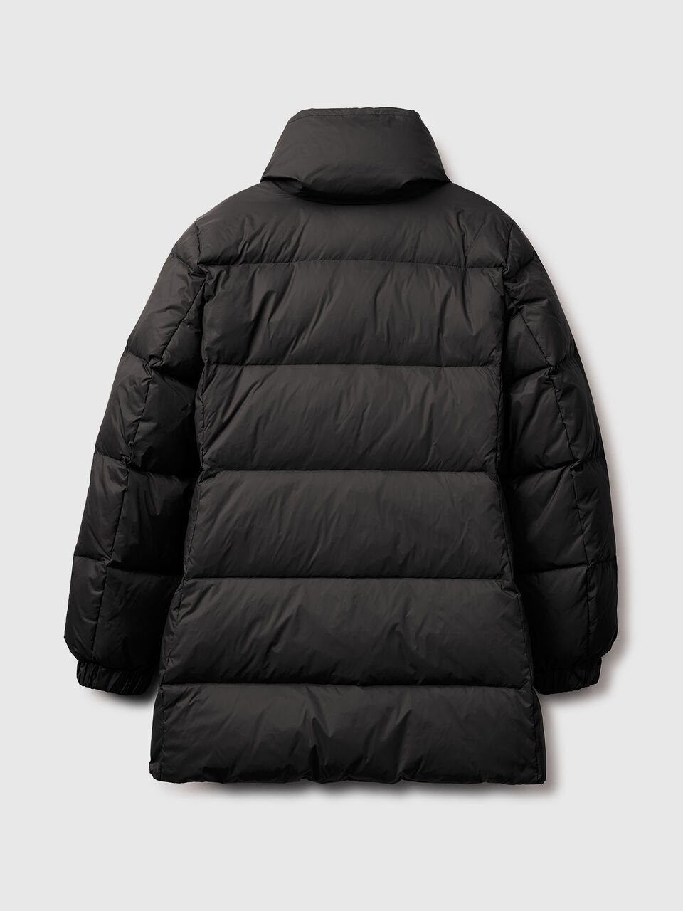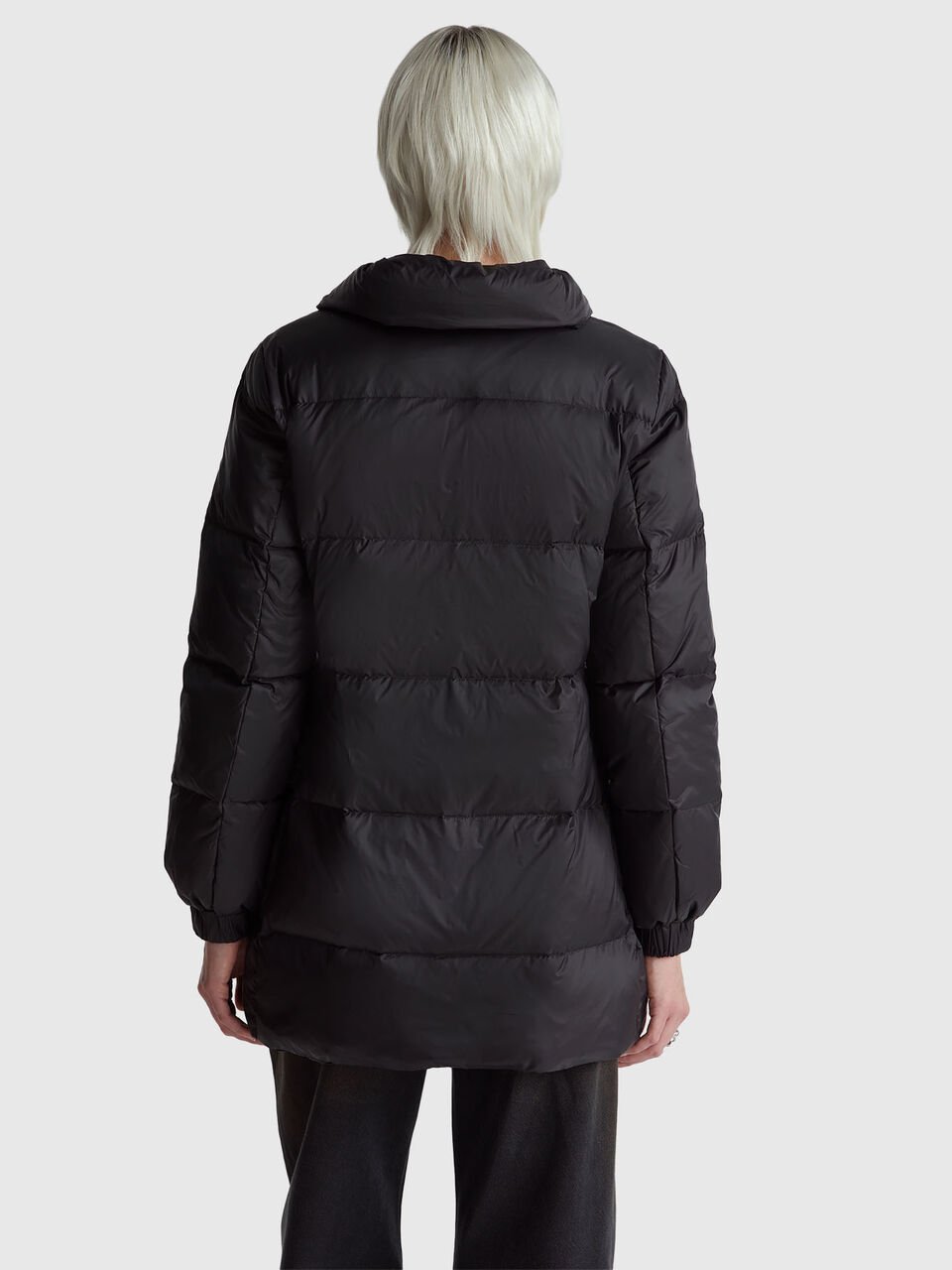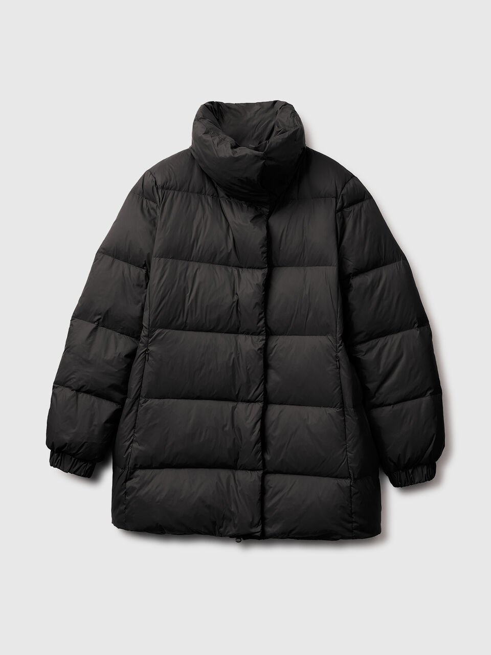 Duga najlonska jakna sa horizontalnim jorganom i jorganom od originalnog recikliranog paperja. Sa odvojivom visokom kragnom. Dužina ispod kukova sa skrivenim patentnim zatvaračem i otvaranjem na dugme. Džepovi umetnuti sa strane. Toplo i udobno, pogodno i za hladnije mesece. Ova odeća je napravljena od najmanje 20% RCS sertifikovanog recikliranog poliamida. SERTIFIKOVANO OD ICEA – ICEA – TKS – 611. Proizvodi sertifikovani prema Standardu za recikliranje (RCS) sadrže reciklirani sadržaj koji je nezavisno verifikovan u svakoj fazi lanca snabdevanja, od reciklaže do gotovog proizvoda.