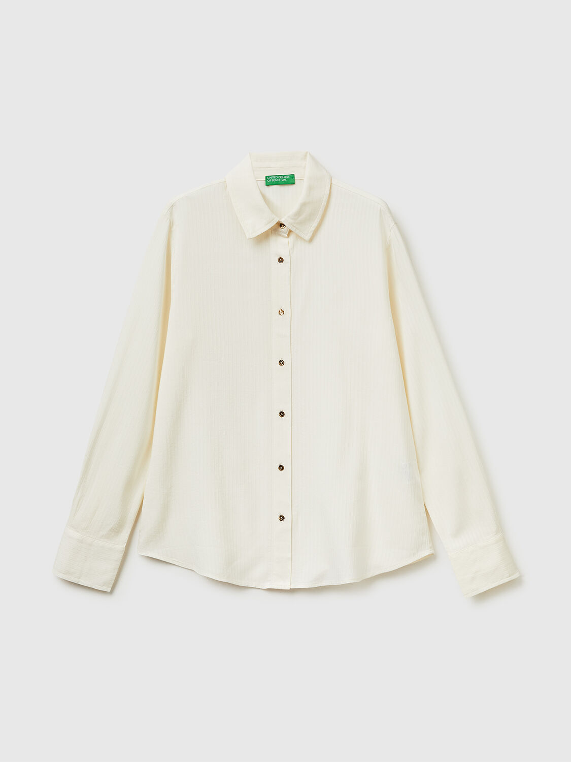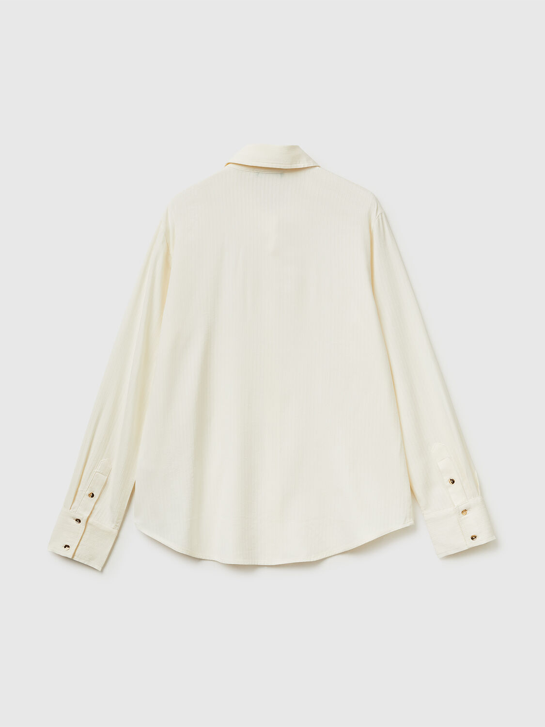 Lepršava košulja dugih rukava od prugaste viskoze i pamučne viskoze obojene pređom sa blago talasastim izgledom. Uobičajeno krojenje sa klasičnom kragnom i dugmadima sa zlatnim završetkom. Elegantan i originalan.