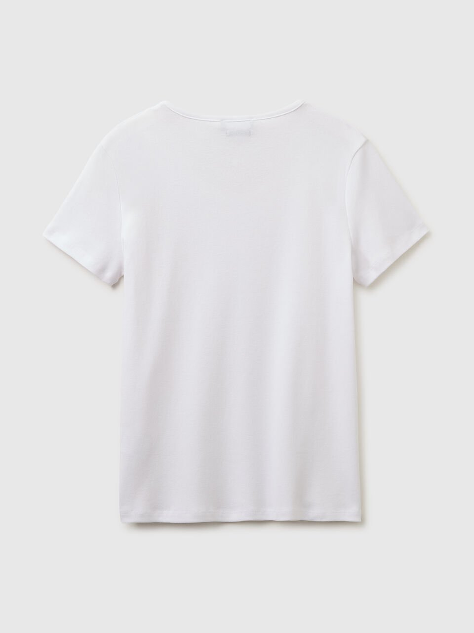 Rebrasta majica kratkih rukava sa V-izrezom i tankog kroja. Napravljen od 100% pamuka sa dugim vlaknima, mekan, udoban i otporan. Neophodan komad za svakodnevnu garderobu.