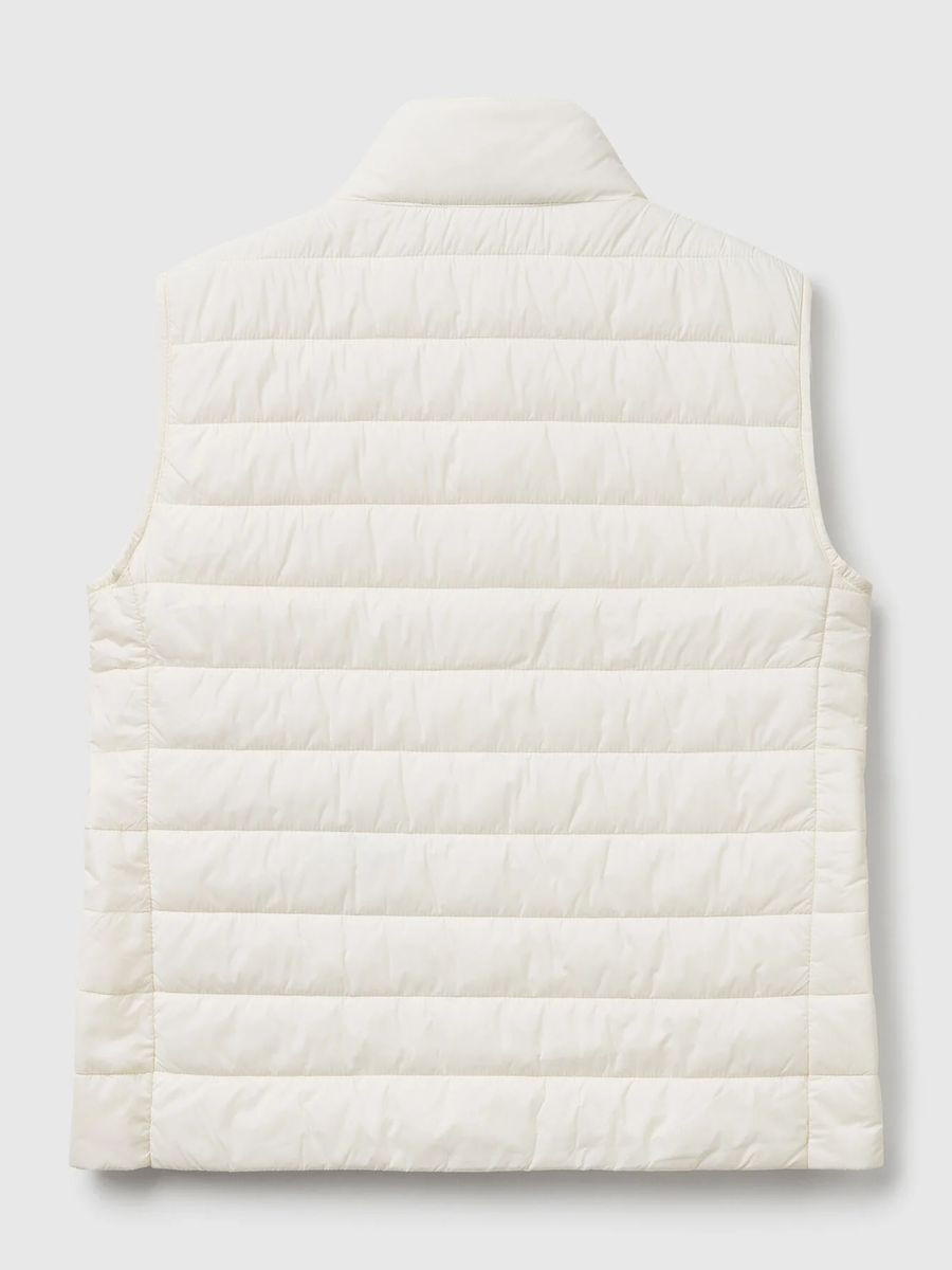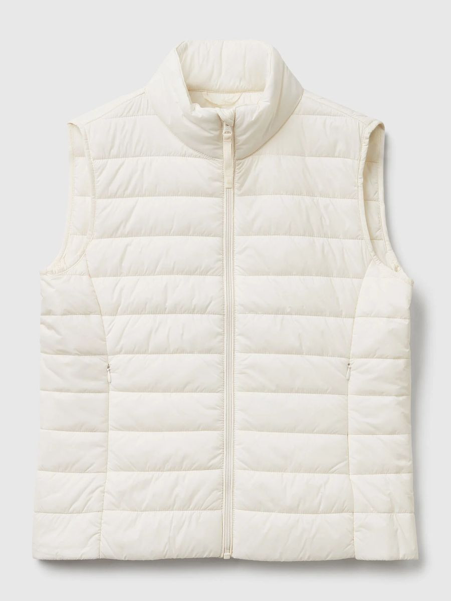 Pufer jakna bez rukava od najlona „Rain Defender“ uskog kroja. Stojeća kragna, prednji patentni zatvarač, umetnuti bočni džepovi. Ova odeća sadrži 100% RCS sertifikovanu podlogu od recikliranog poliestera. SERTIFIKOVANO OD ICEA – ICEA – TKS – 611. Proizvodi sertifikovani prema Standardu za recikliranje (RCS) sadrže reciklirani sadržaj koji je nezavisno verifikovan u svakoj fazi lanca snabdevanja, od reciklaže do gotovog proizvoda.