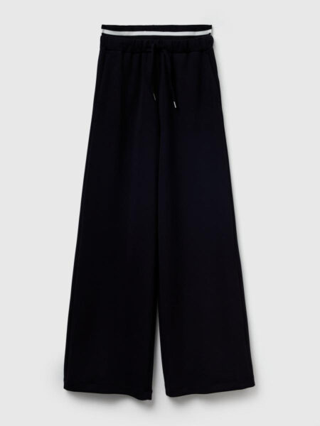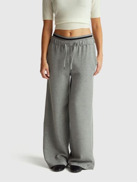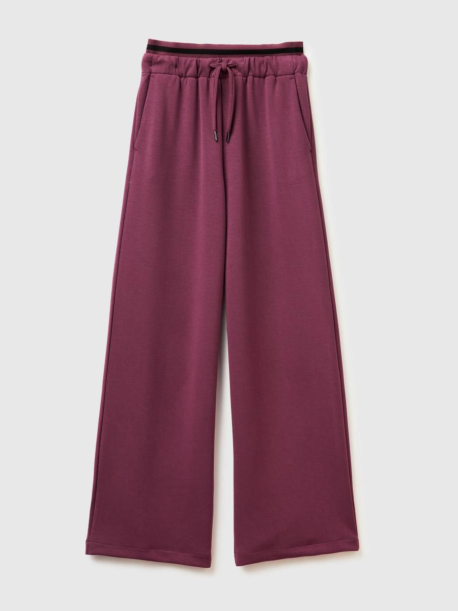 Trenerka od mekog rastegljivog modala. Široke nogavice opuštenog kroja i džepovi uvučeni sa strane. Rastegljivi struk sa rebrastim rubom. Ležeran i udoban komad odeće, bez žrtvovanja stila.