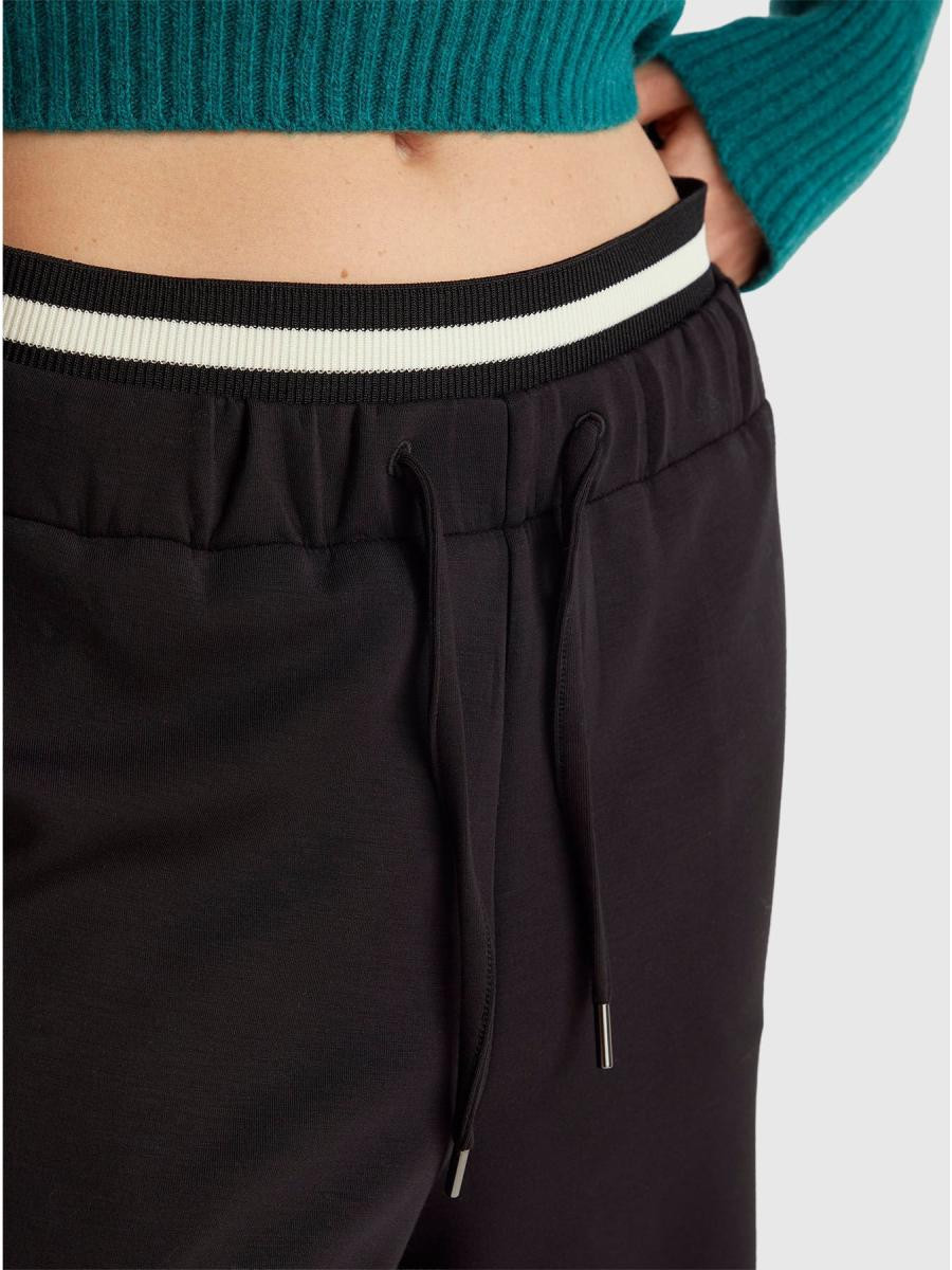 Trenerka od mekog rastegljivog modala. Široke nogavice opuštenog kroja i džepovi uvučeni sa strane. Rastegljivi struk sa rebrastim rubom. Ležeran i udoban komad odeće, bez žrtvovanja stila.